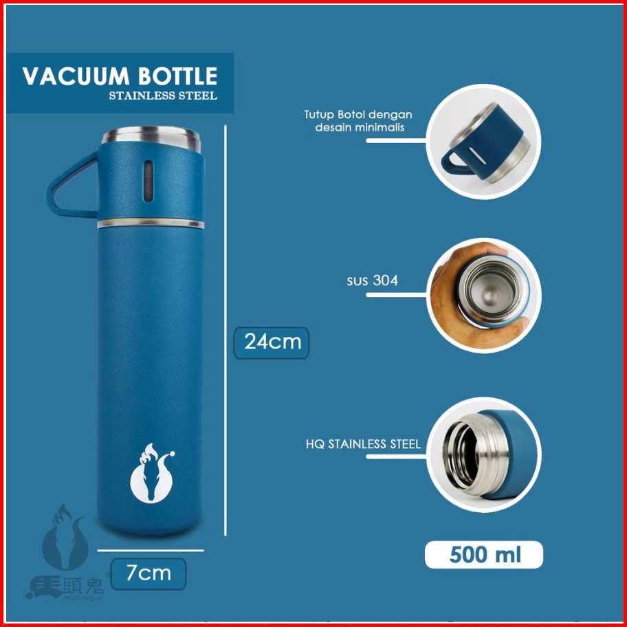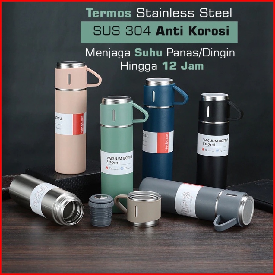 Termos Sultan Vacuum Flask Set Botol Minum Cangkir Premium 500 Ml Panas Dingin Takasimura Store
