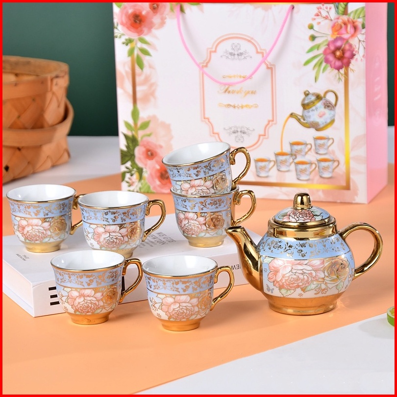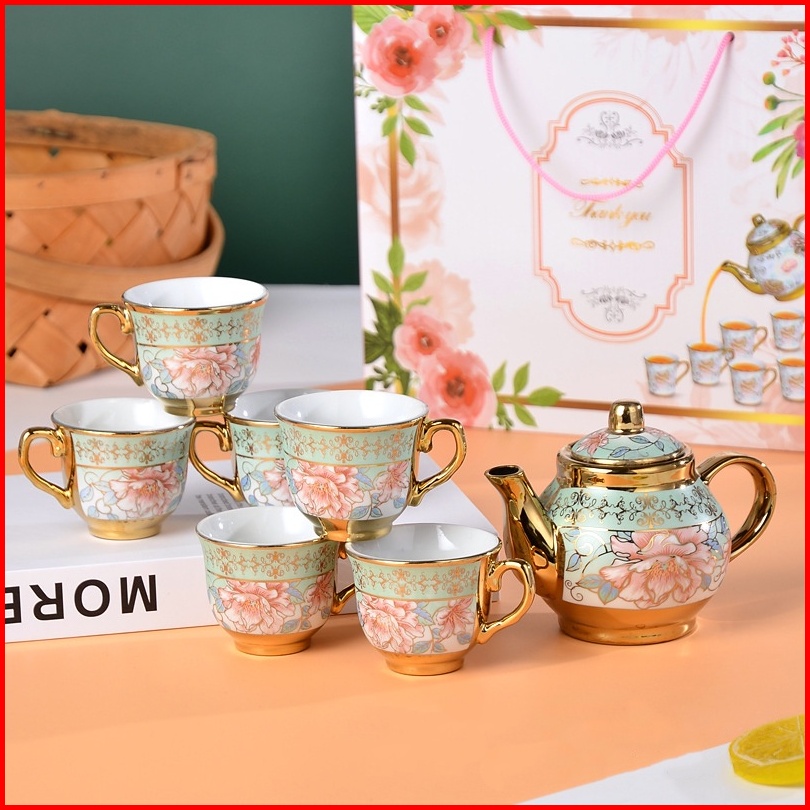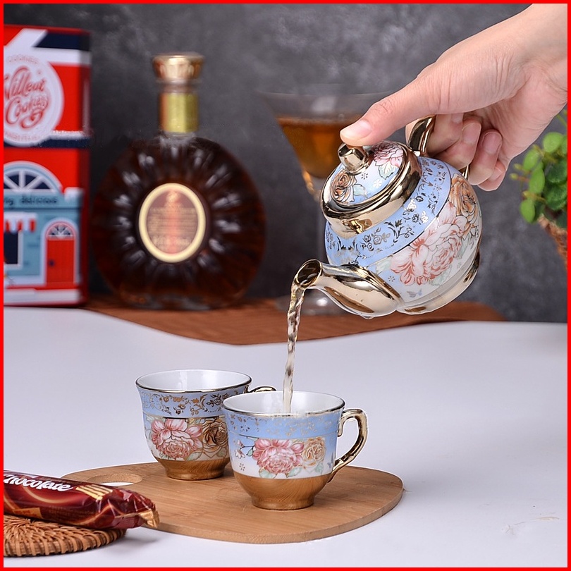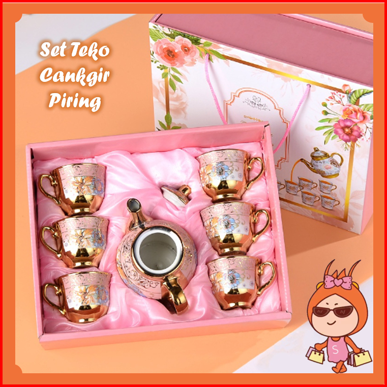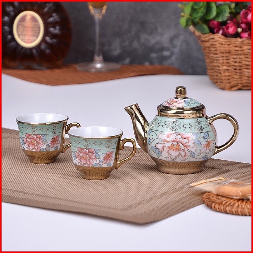 Reseller Welcome - 5345 Set Teko Cangkir Piring Keramik European Classic Style Teapot Motif Bunga Rose Teapot Cup Porcel