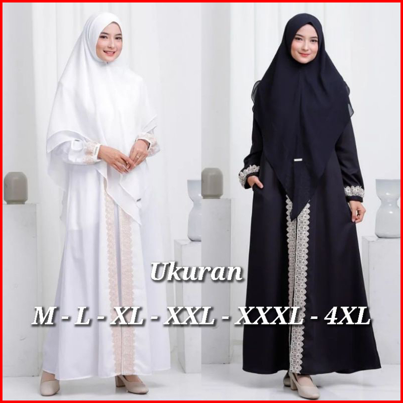 Hanaya Syari Plus Khimar Ceruty 2 Layer Ukuran M - L - Xl - Xxl - Xxxl - 4xl Gamis Syari Busui Polos Dress Set Murah Kek
