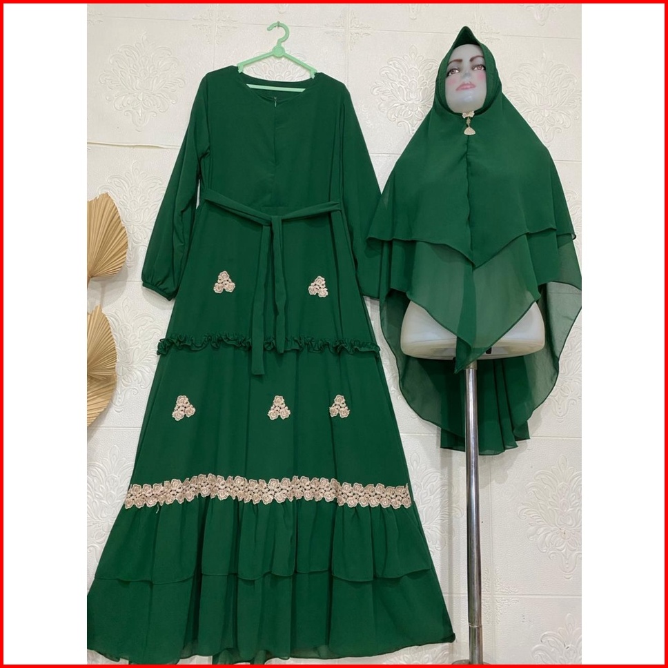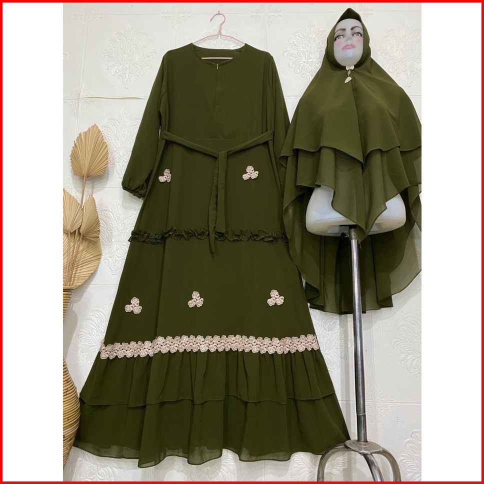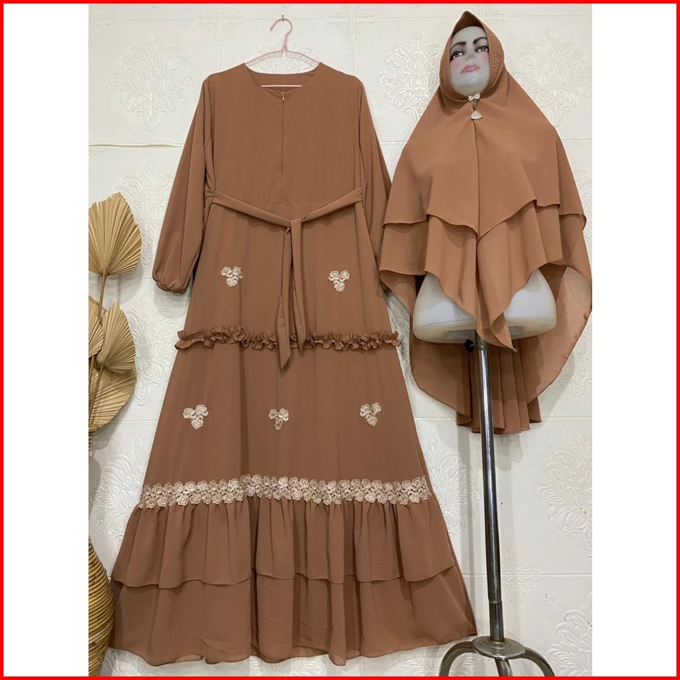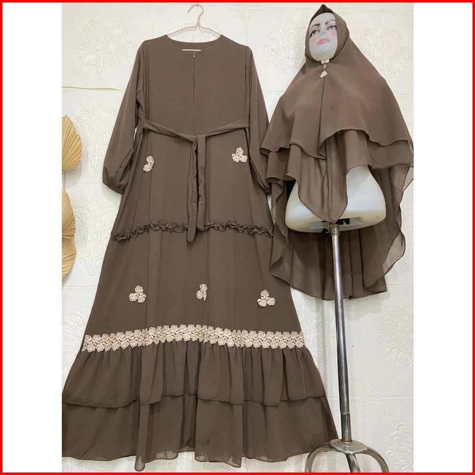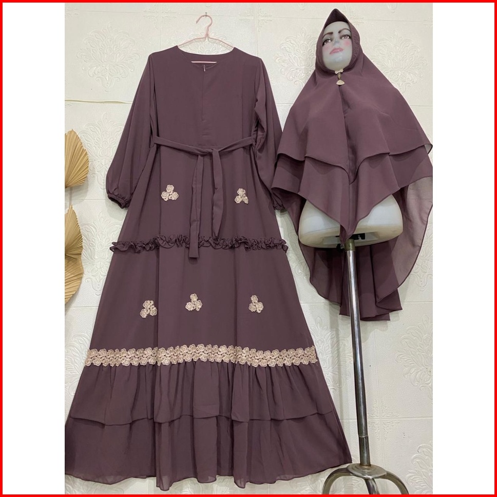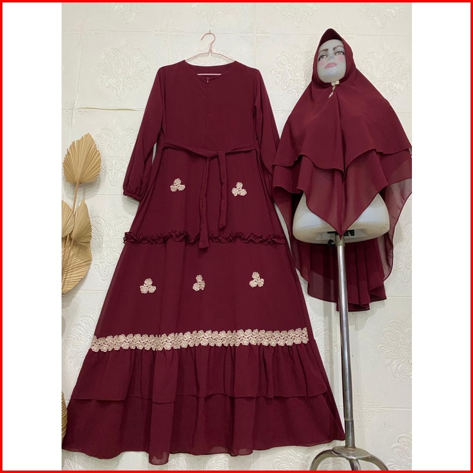 Gamis Syari Ceruty Renda Gamis Terbaru Mix Renda Bunga Cantik Gamis Ceruty Babydoll