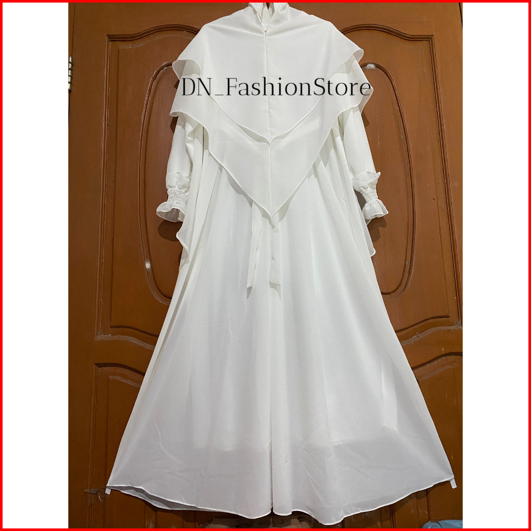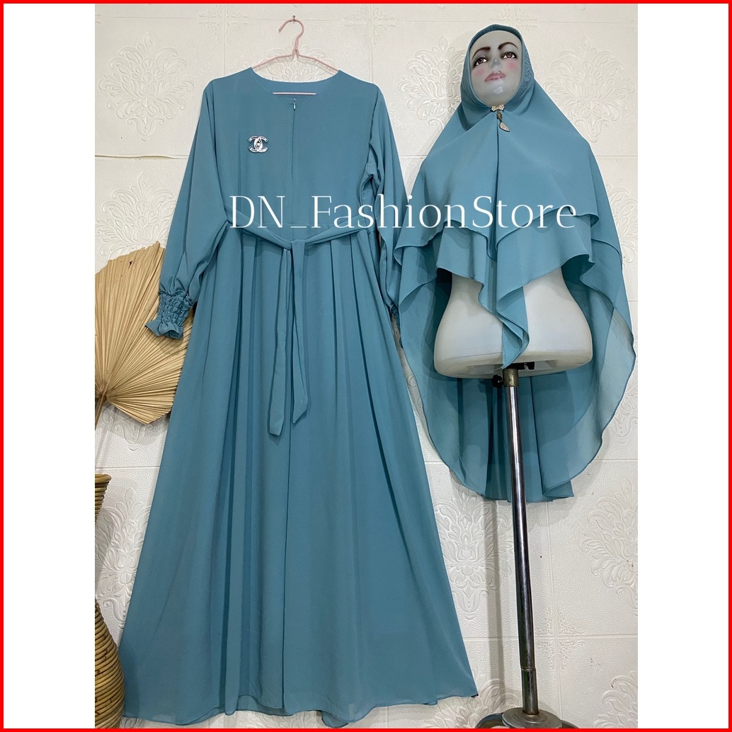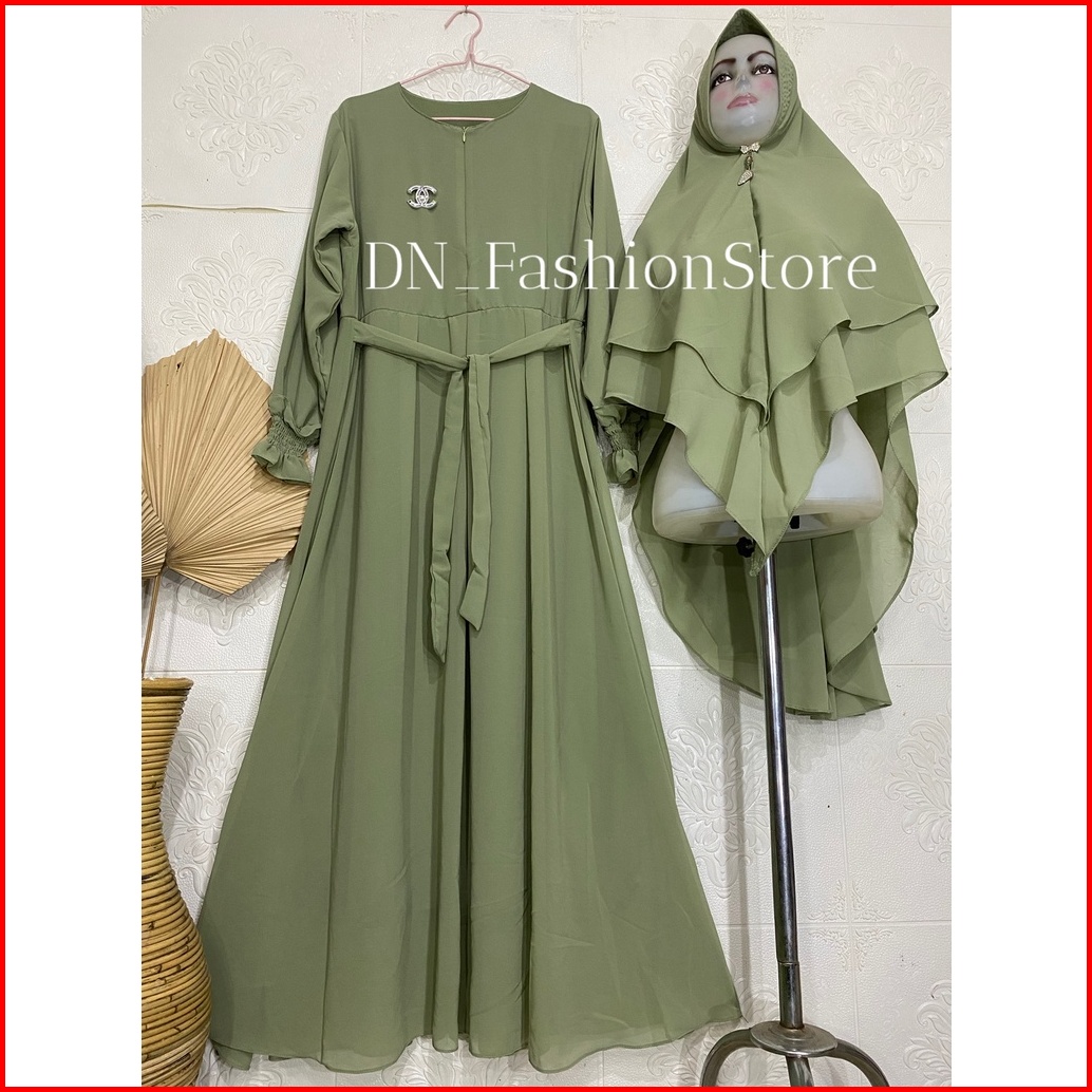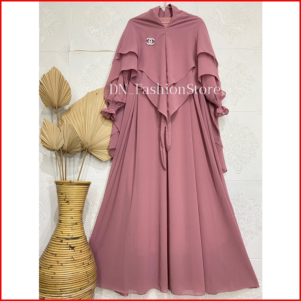 Gamis Ceruty Babydoll Polos Set Jilbab Free Bros Bahu Tangan Karet Busui Friendly