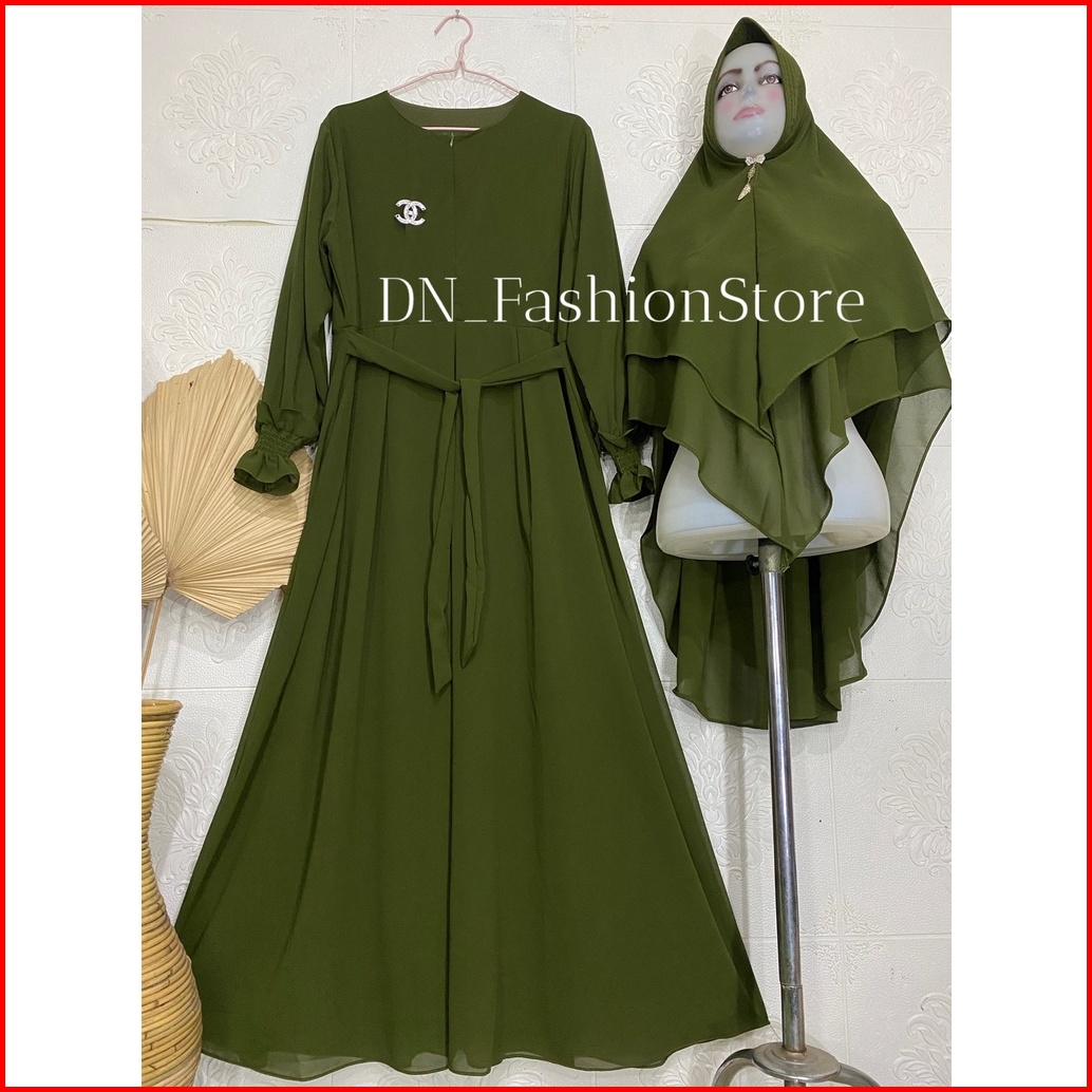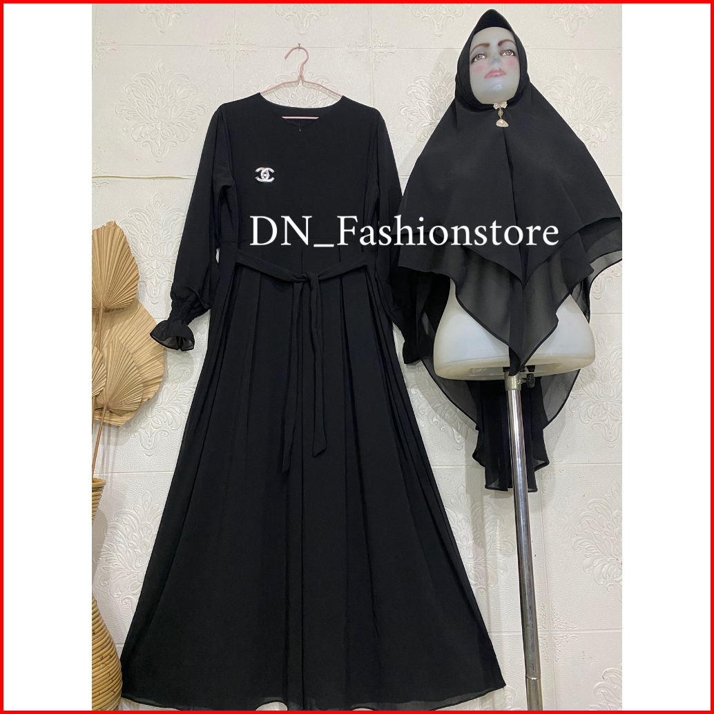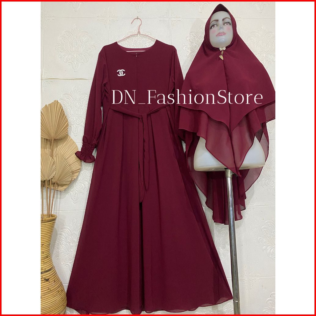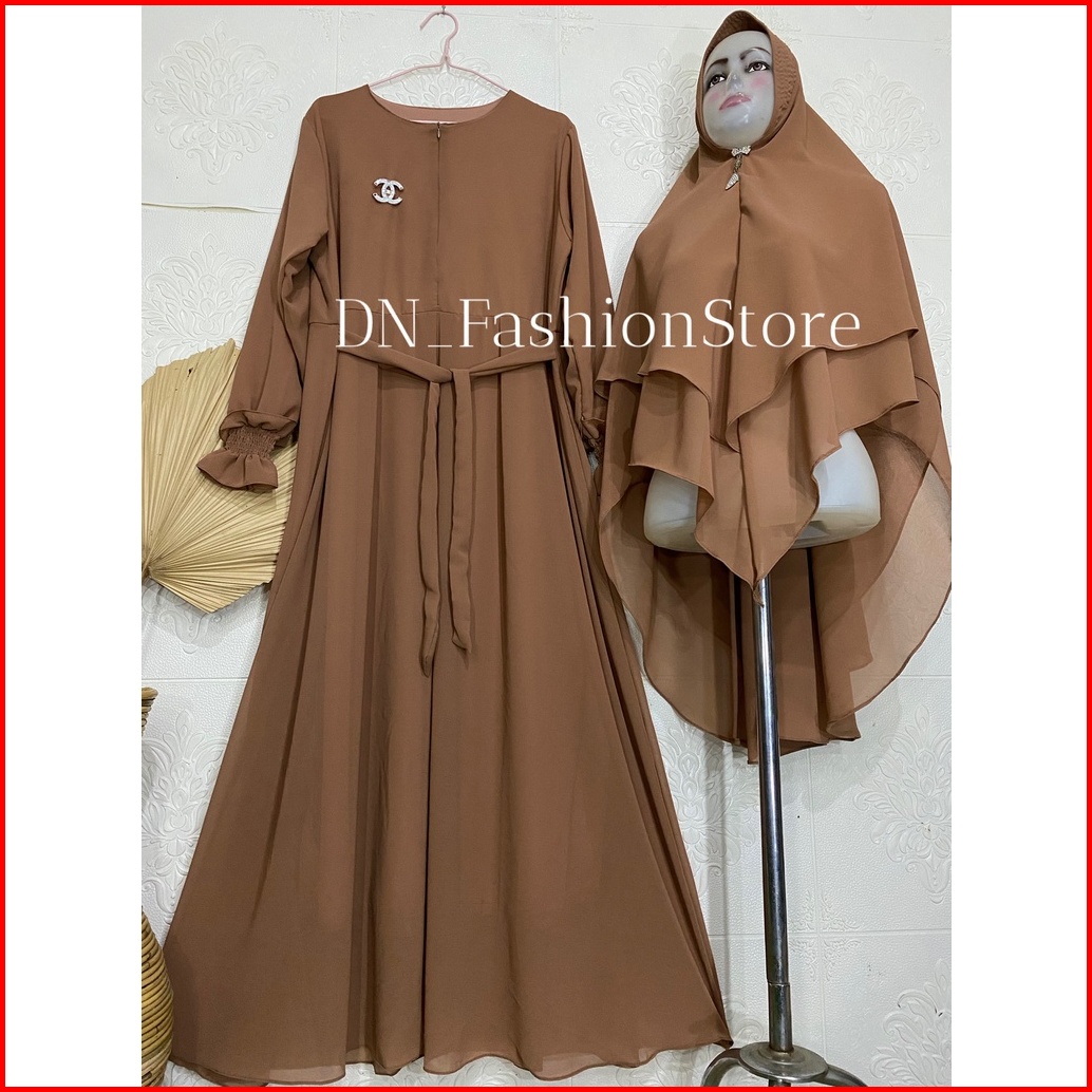 Gamis Ceruty Babydoll Polos Set Jilbab Free Bros Bahu Tangan Karet Busui Friendly