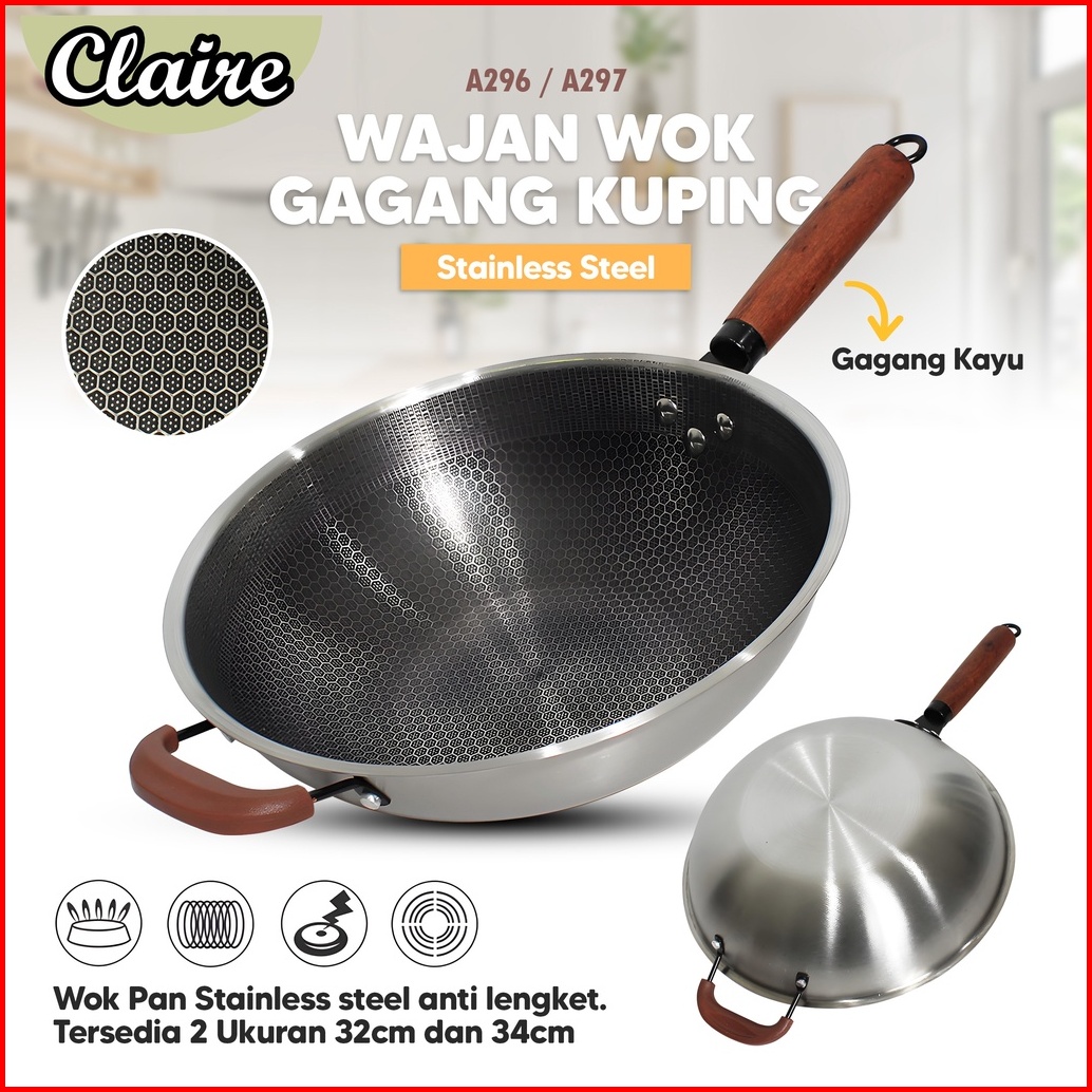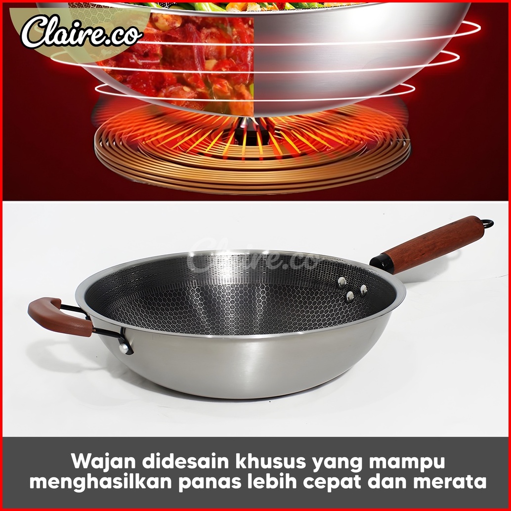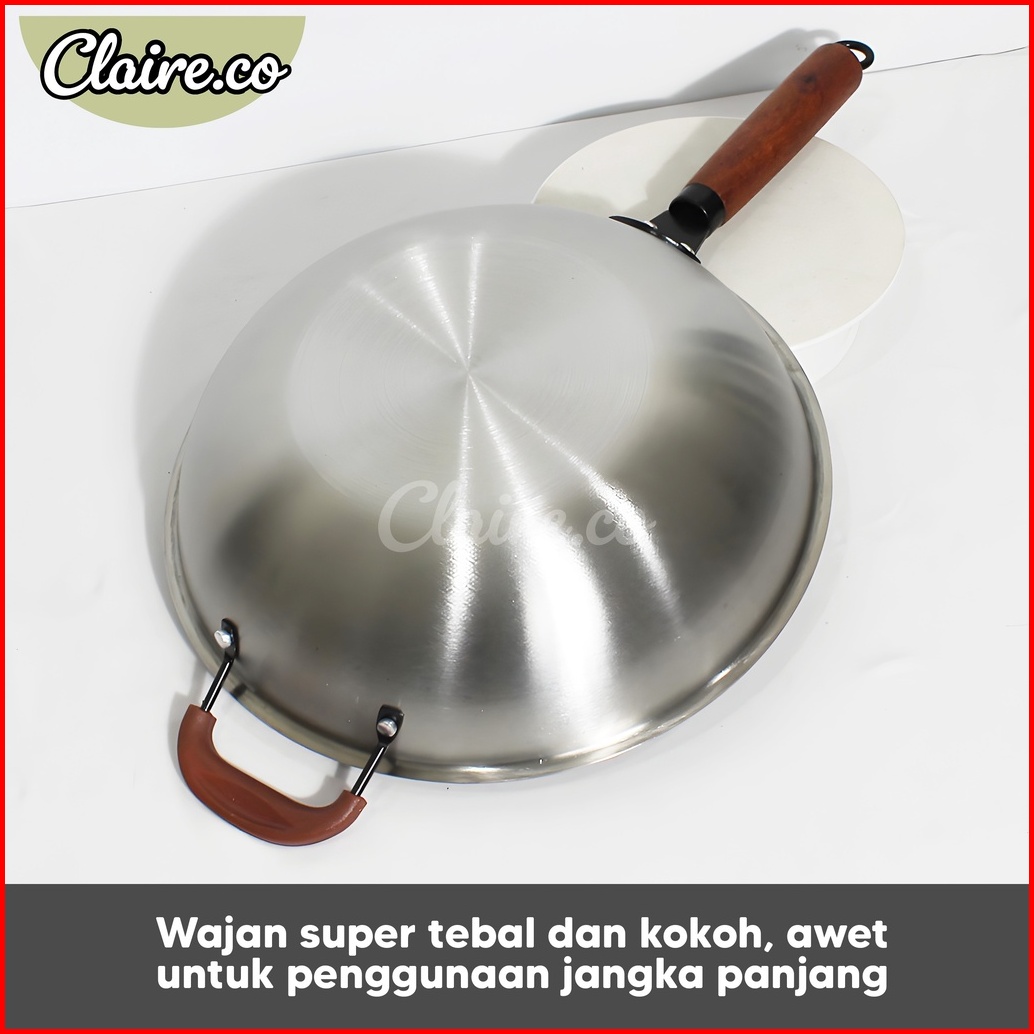 Wajan Wok Gagang Kuping Stainless Steel Wajan Wok Tebal