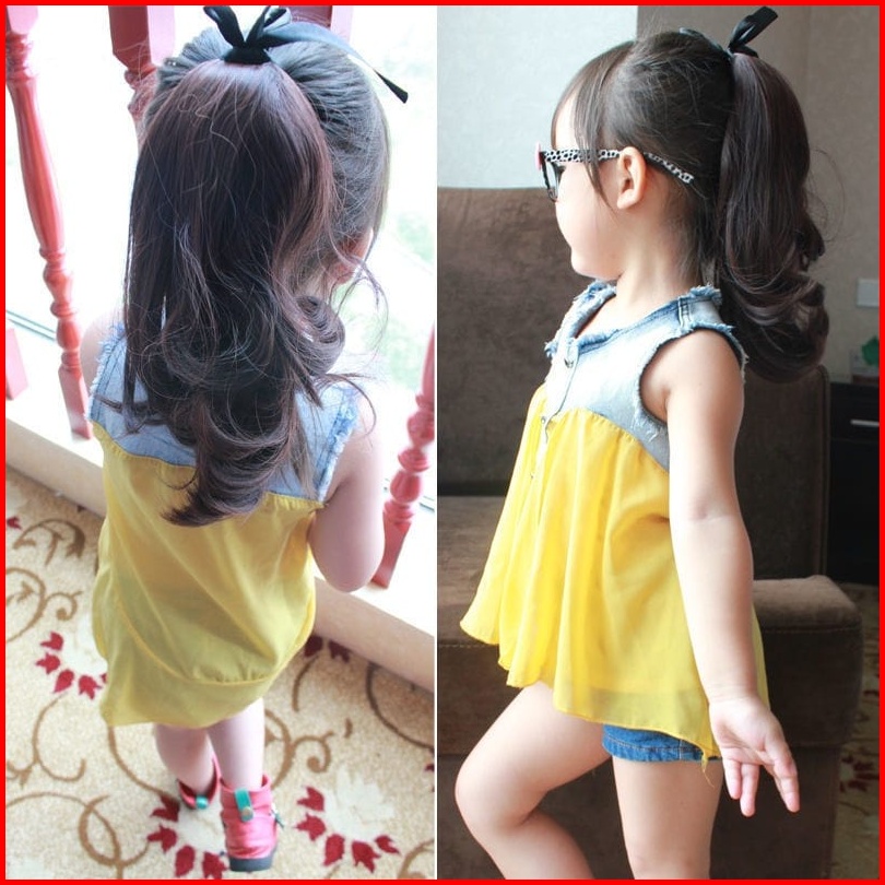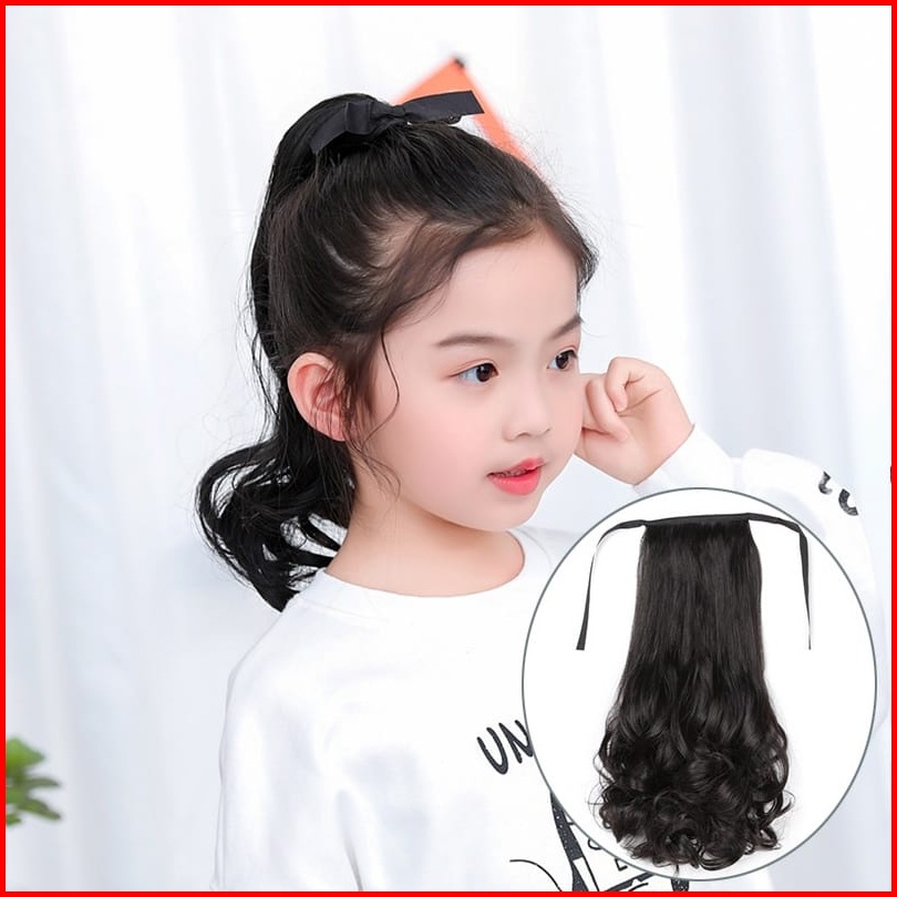 Wd Wig Ponytail Anak Rambut Palsu Extension Hair Clip Ponytail Model Pendek Keriting 38cm Ponytail Curly Tali