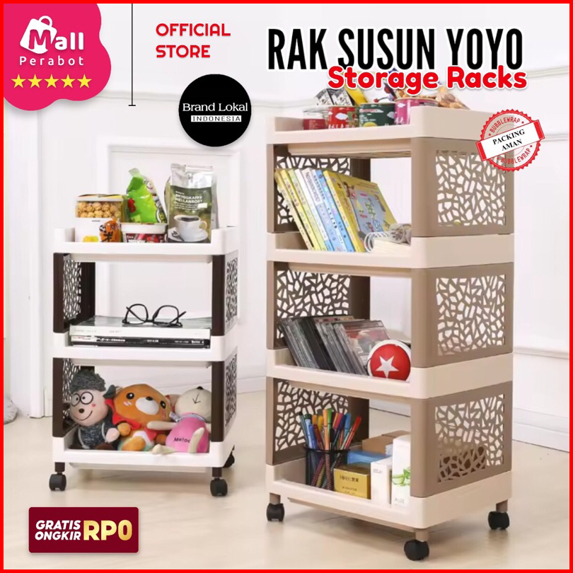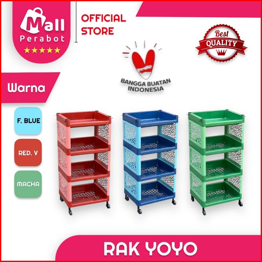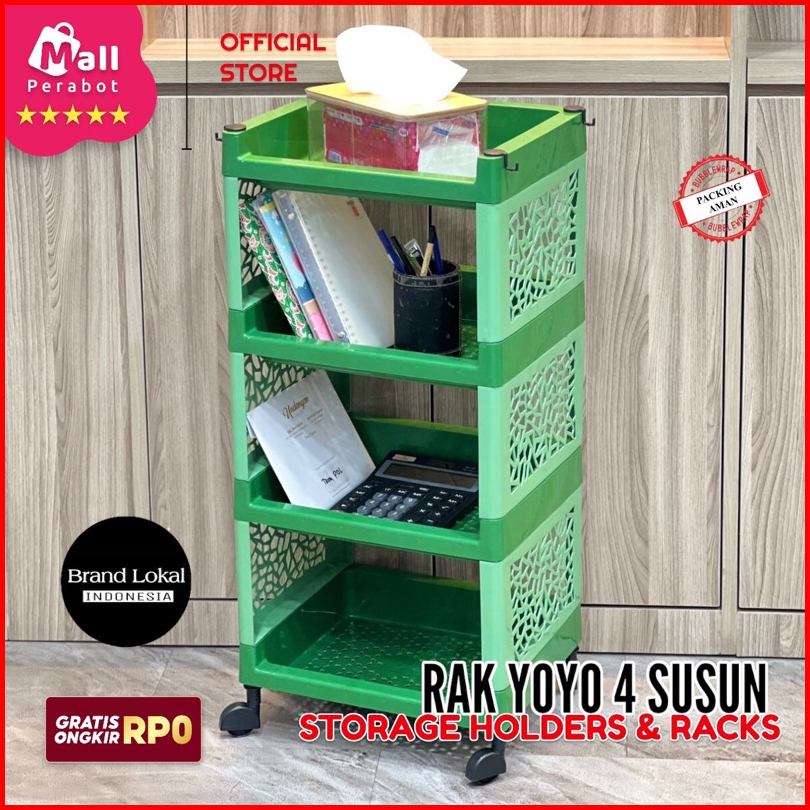 Mall Perabot Rak Susun Yoyo Hitam Serbaguna 4 Tingkat Dengan Roda Rak Kamar Mandi Bahan Plastik Portable Rak Dapur Troll