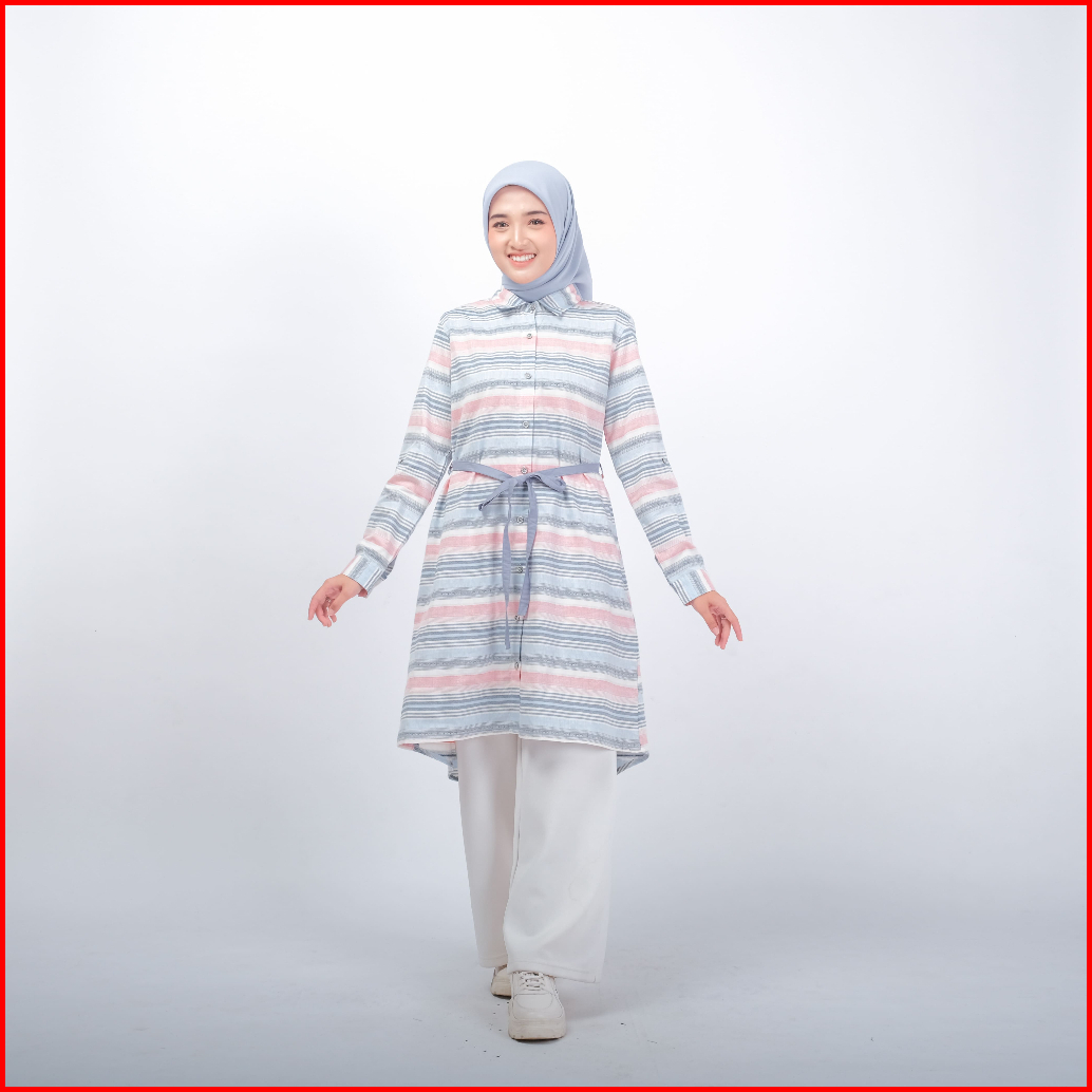 Cotton Instyle - Ayuda Tunik Dress Motif Garis Tali Pinggang Wanita
