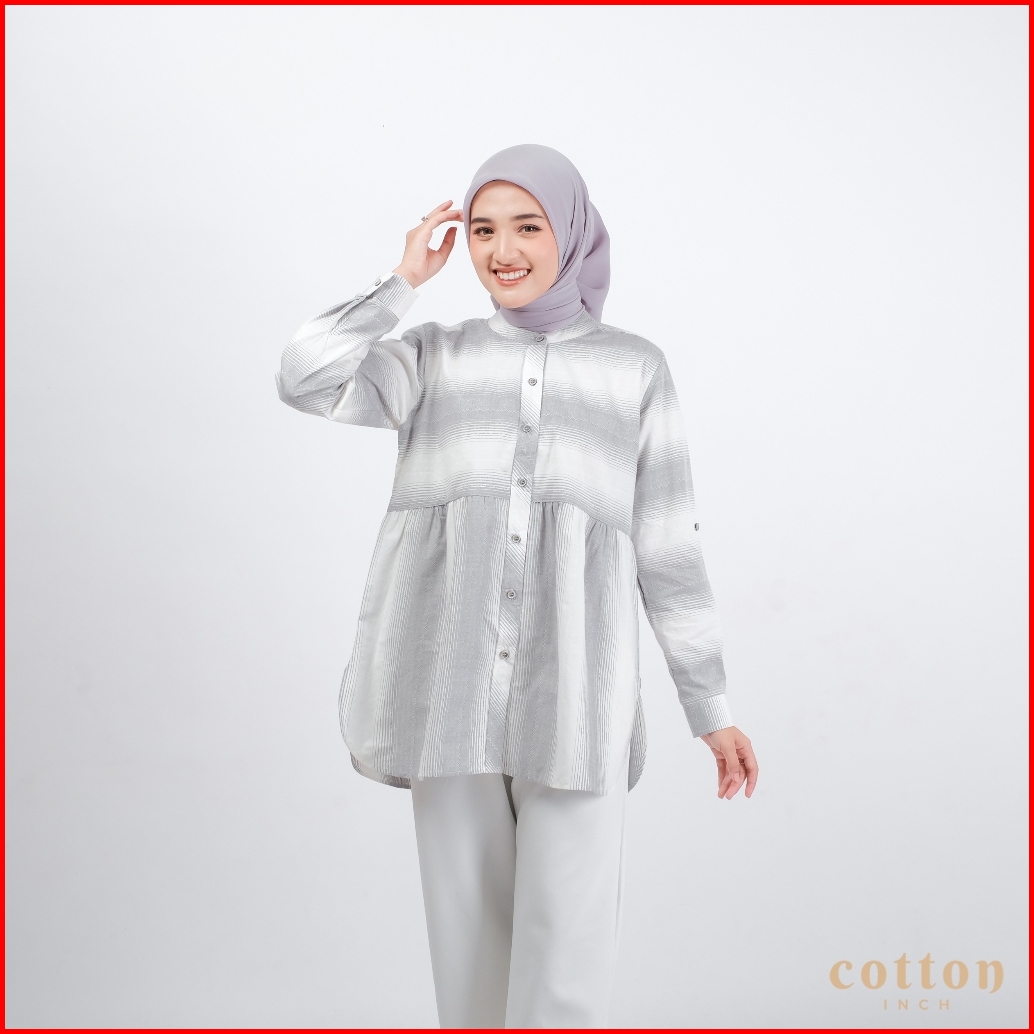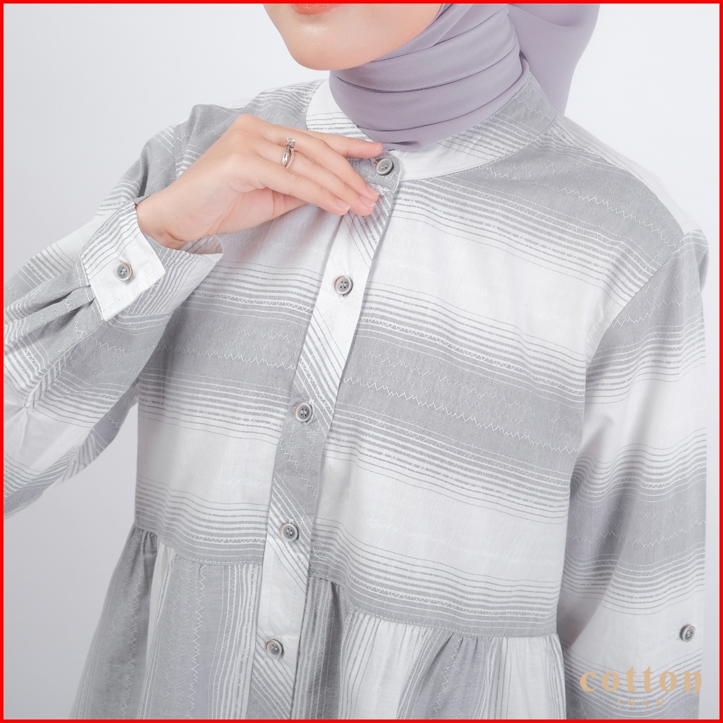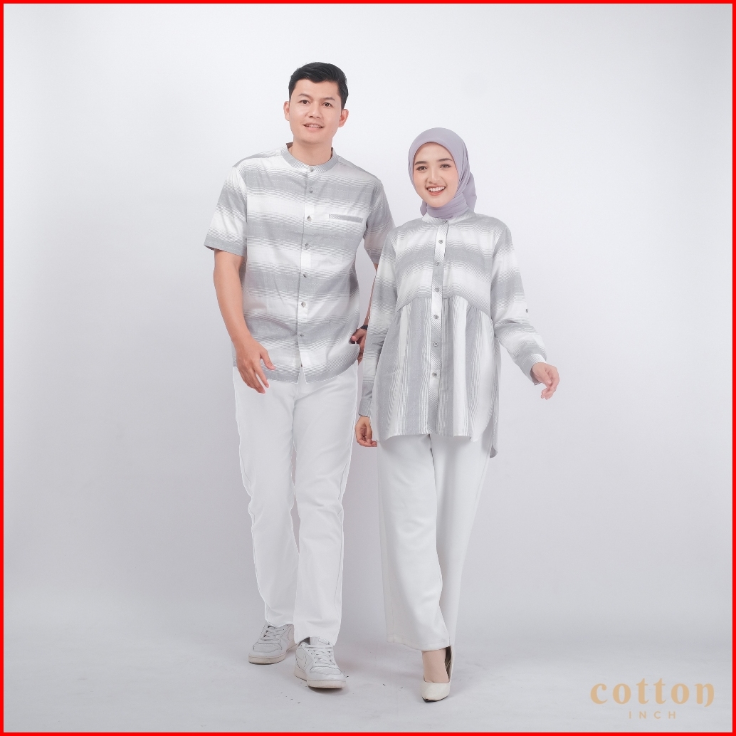 Cotton Inch X Coop Design - Jane Kemeja Koko Couple Tunik Dress Set Motif Salur Sarimbit