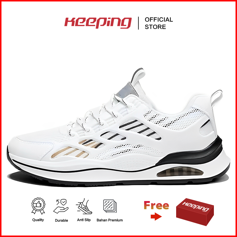 Keeping Sepatu Pria Original Sneakers Cowok Putih Sport Sepatu Olahraga Outdoor Casual Sepatu Jogging Ksr710