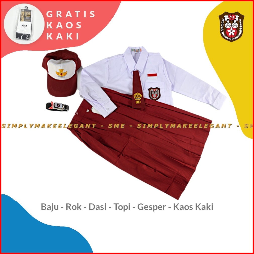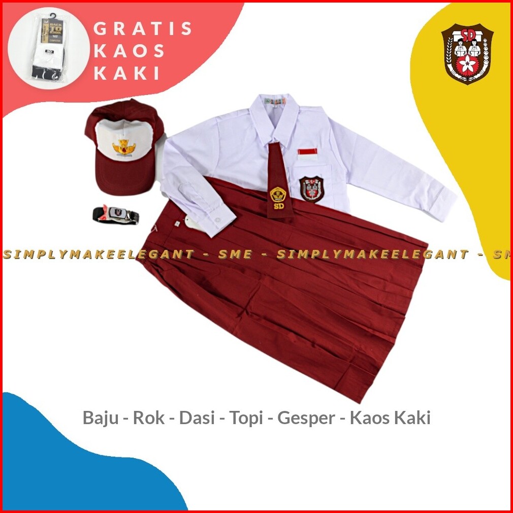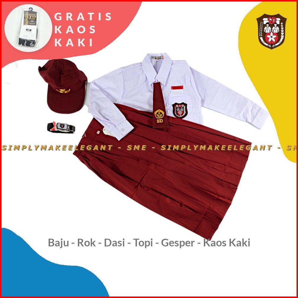 Setelan Super Lengkap Seragam Sekolah Sd Panjang Cewek - Baju Panjang Rok Panjang