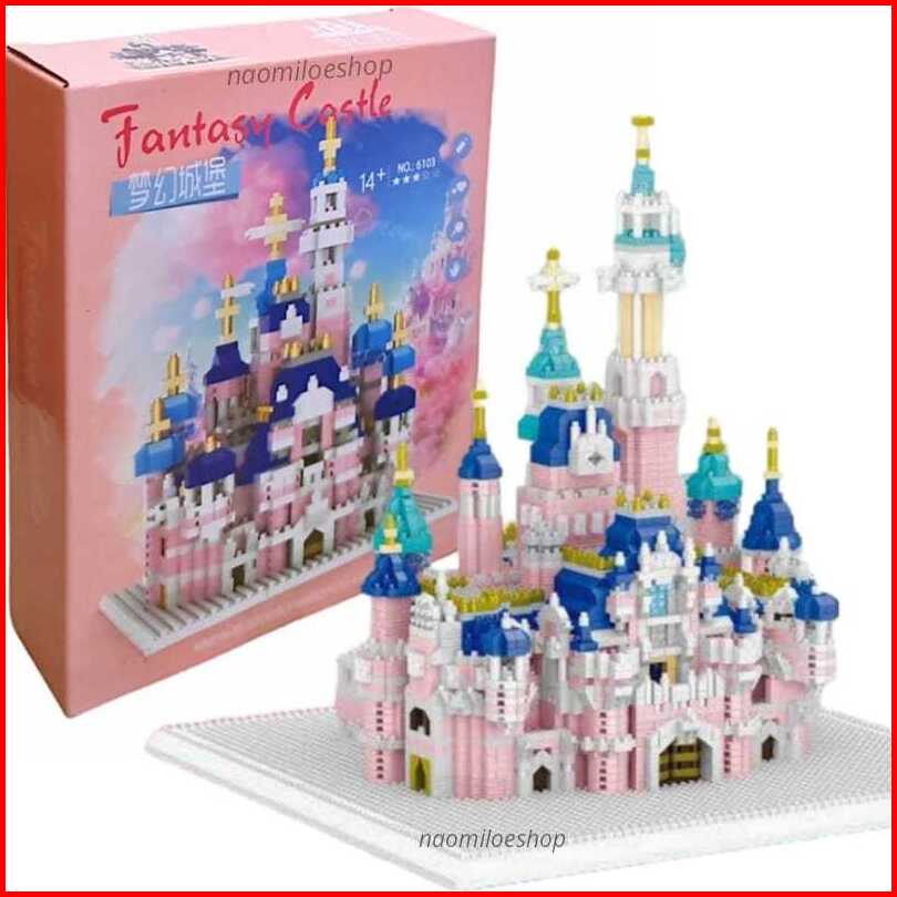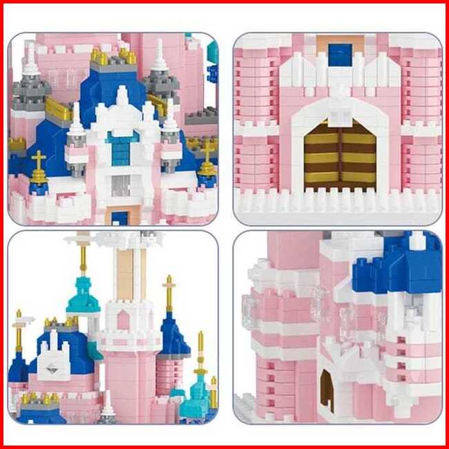 Fantasy Castle Nano Block Istana Mini Blok Pink Castle Miniatur Partikel Istana