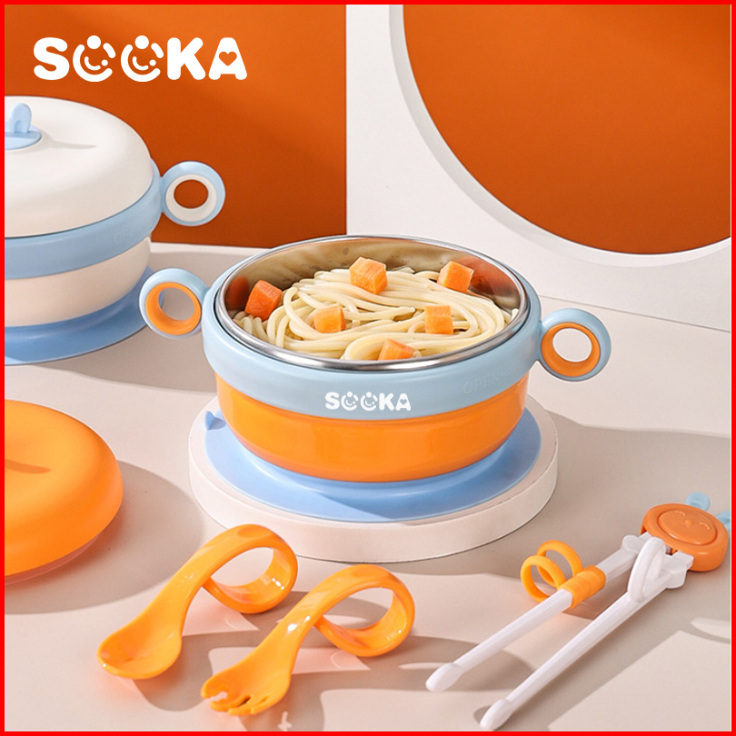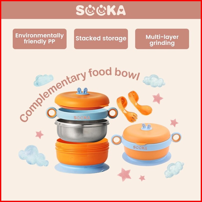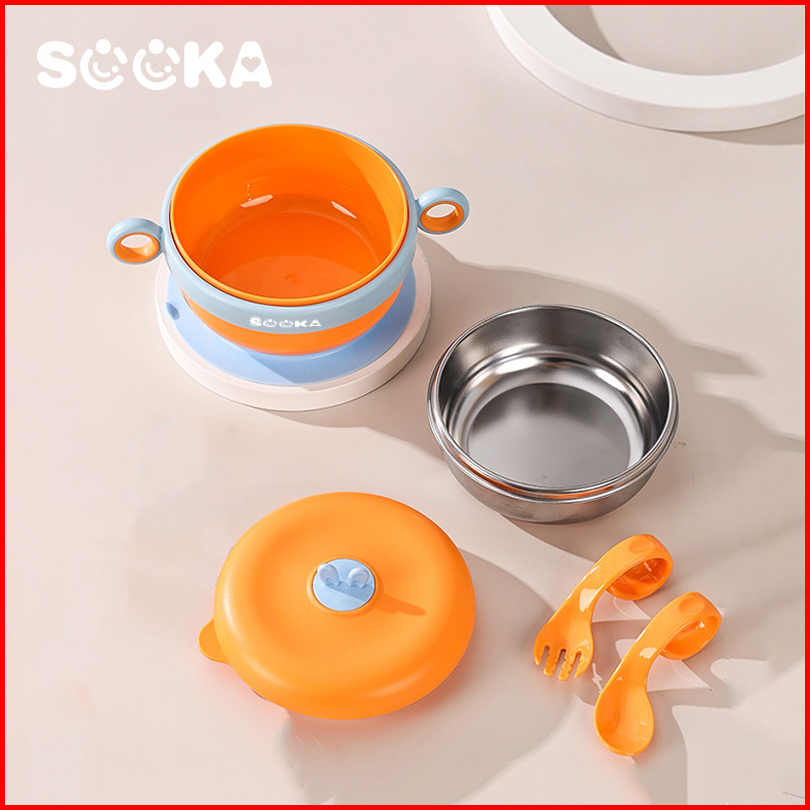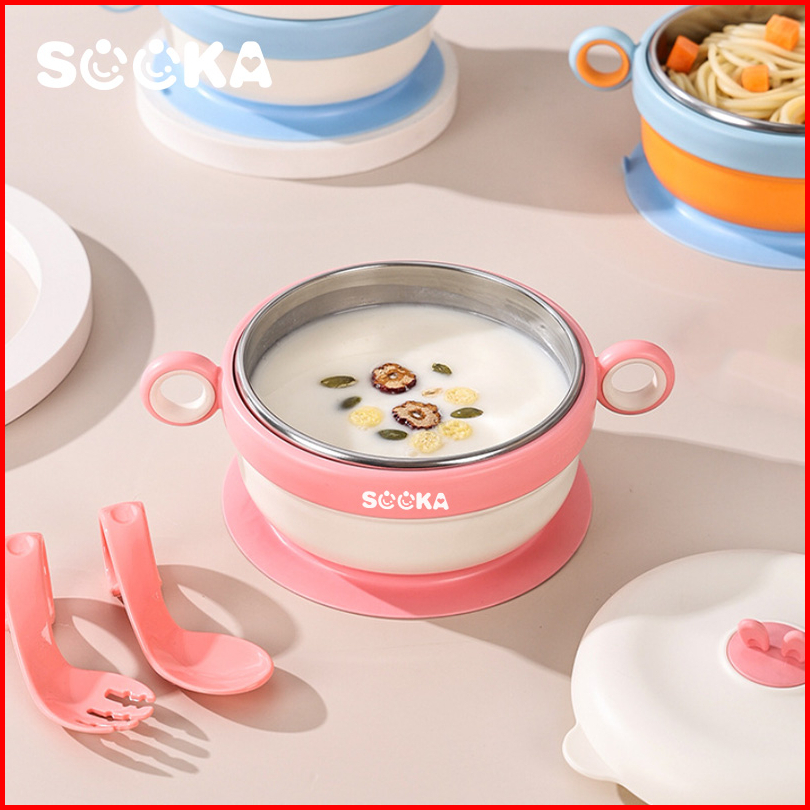 Sooka Mangkok Makan Bayi Anak Stainless Anti Slip Dan Tumpah Tahan Panas 400 Ml Bpa Free Sk-eca1142