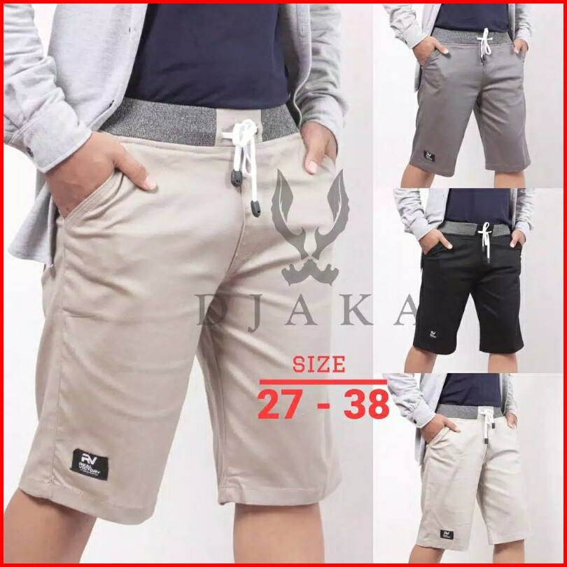 Celana Pendek Pria Cowok Dewasa Chino Rip Karet Pinggang Chinos Katun Twill Premiun