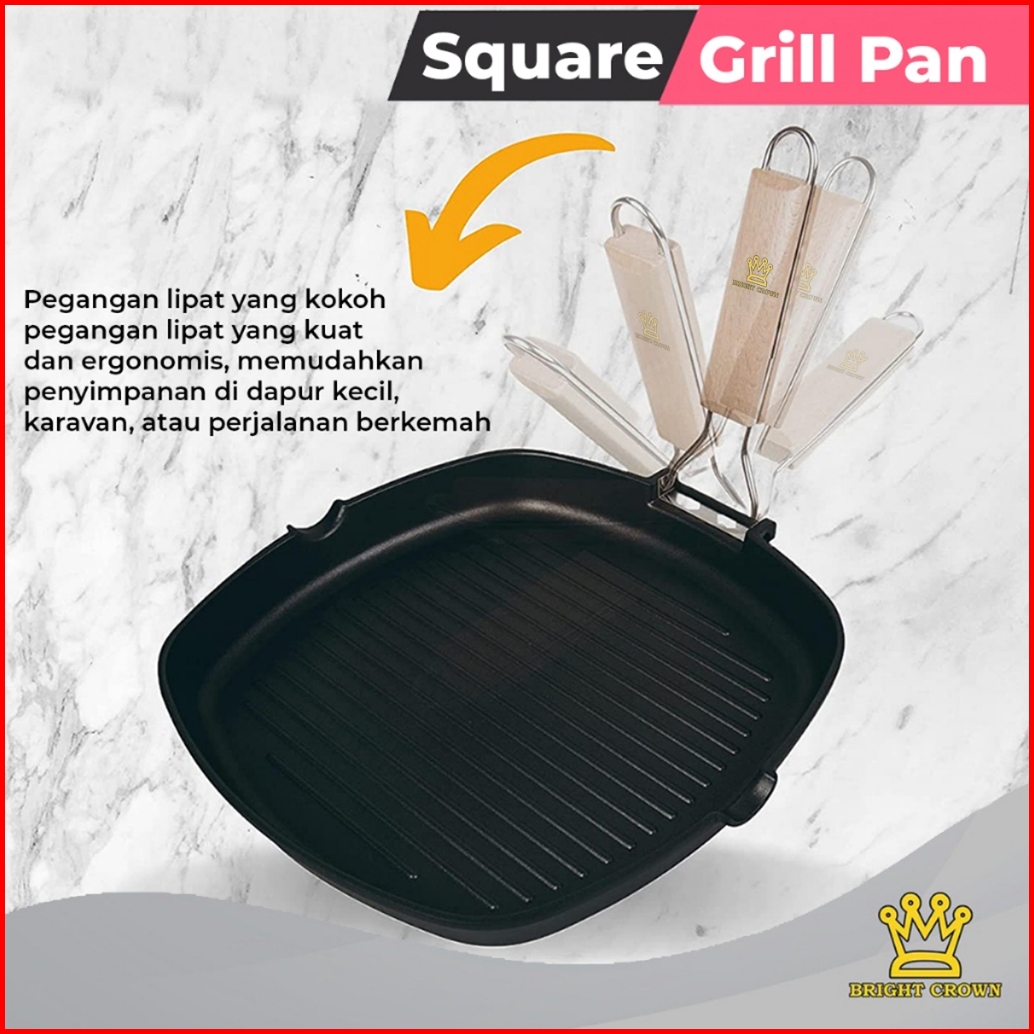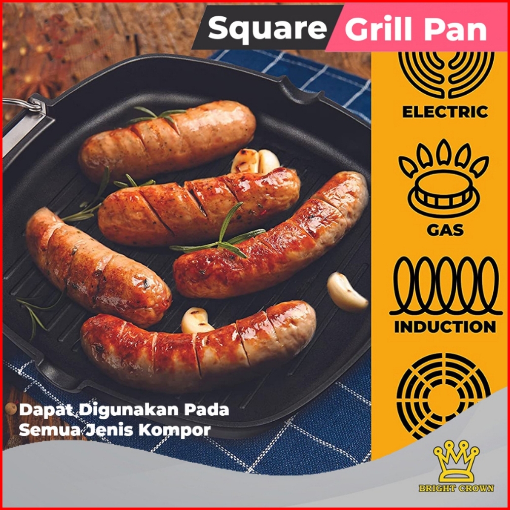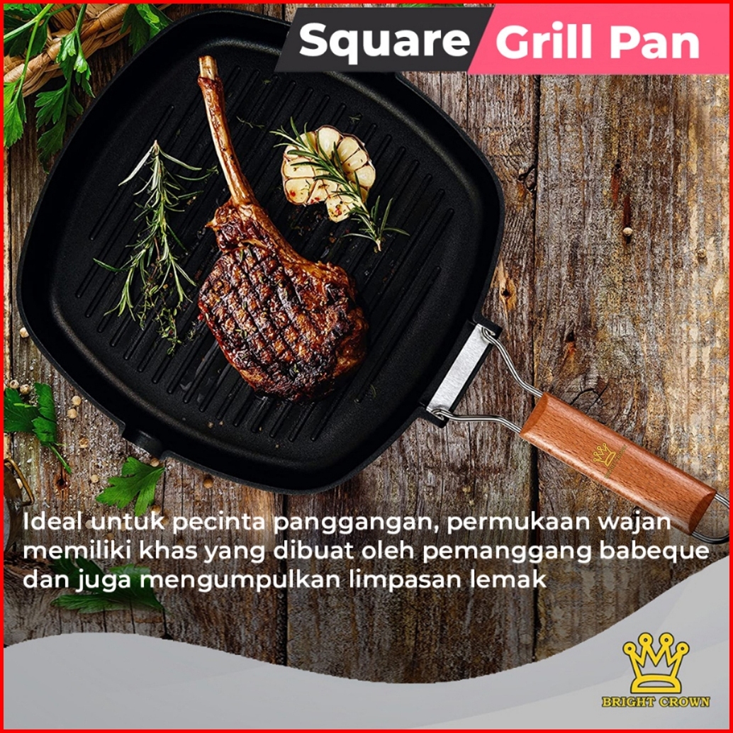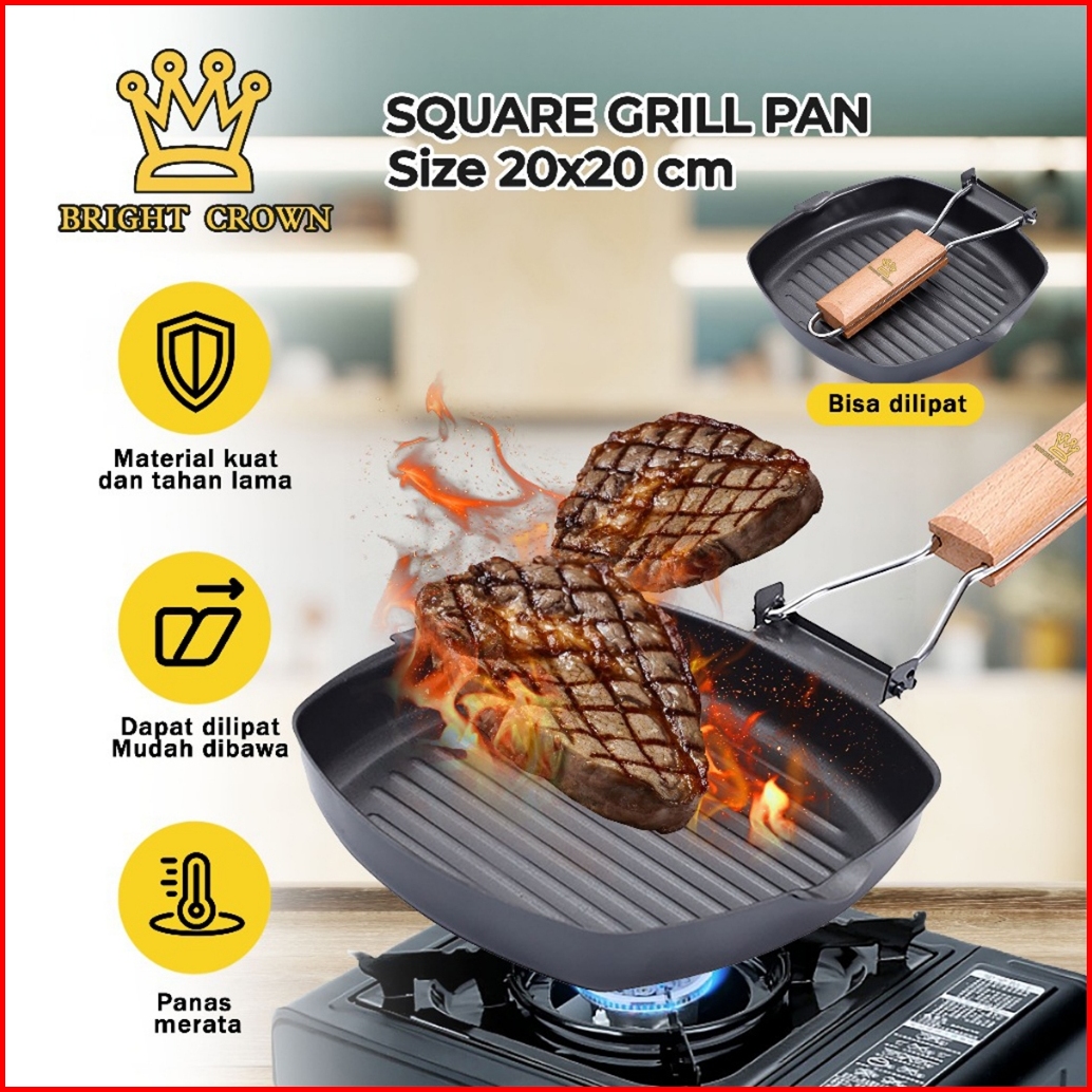 Bright Crown 20cm Panci Panggang Bbq Square Grill Pan Bbq Panggangan Steak Anti Lengket Premium 20cm