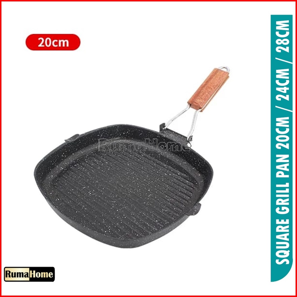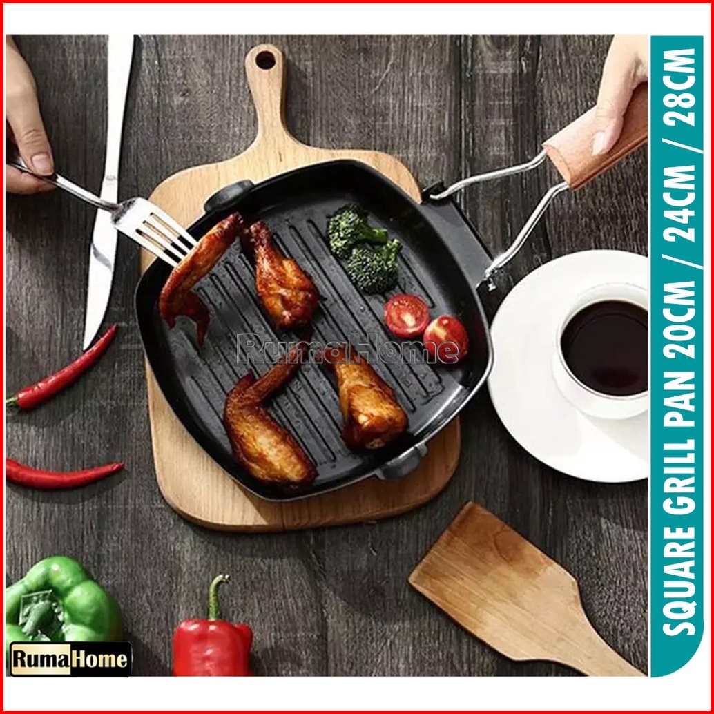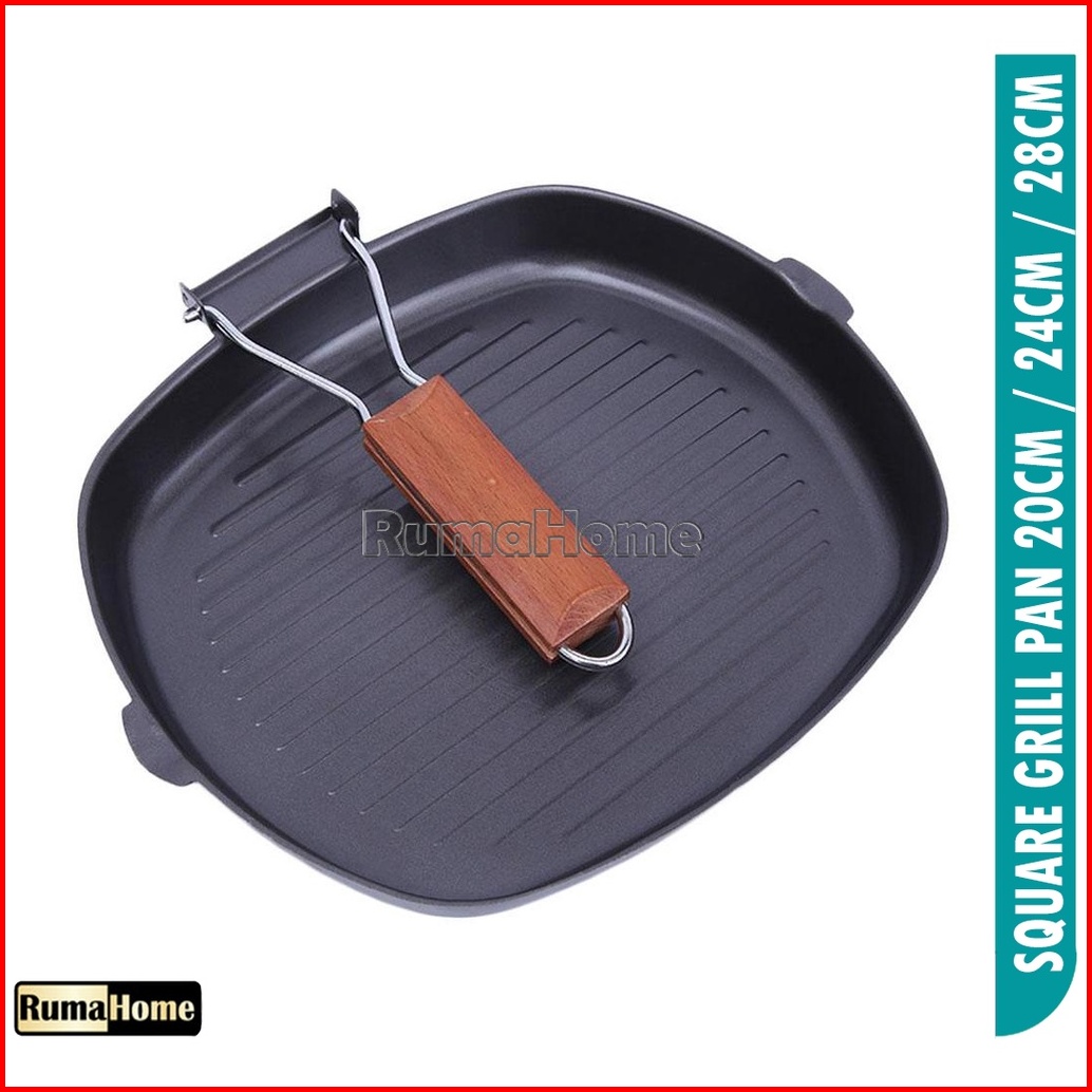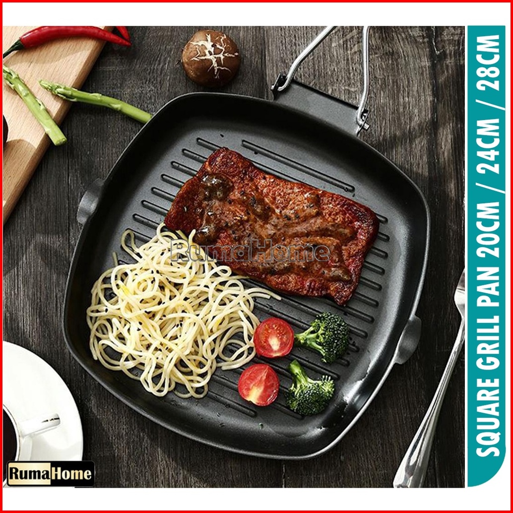 Square Grill Pan Lipat Anti Lengket Grill Pan Anti Lengket 20 24 28cm