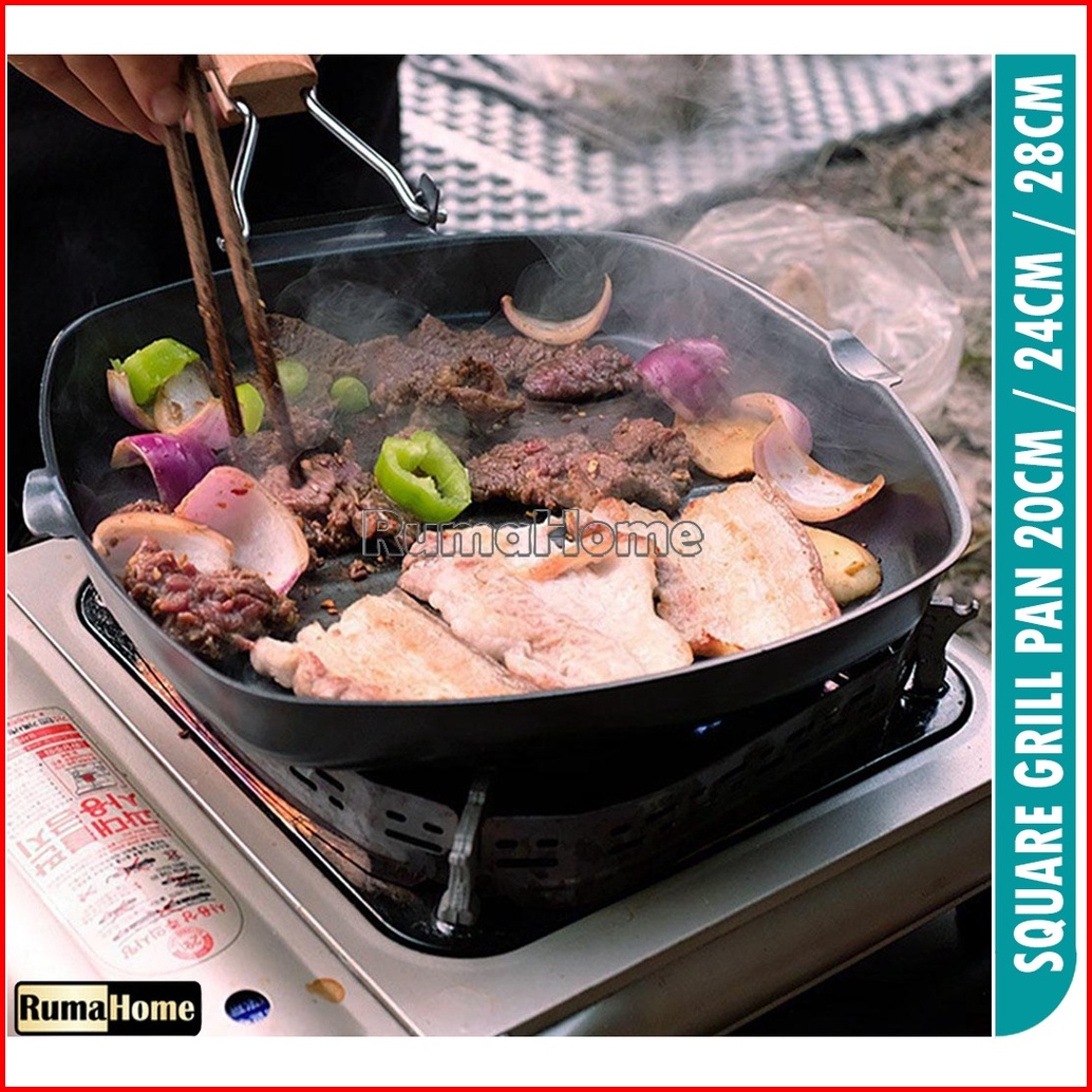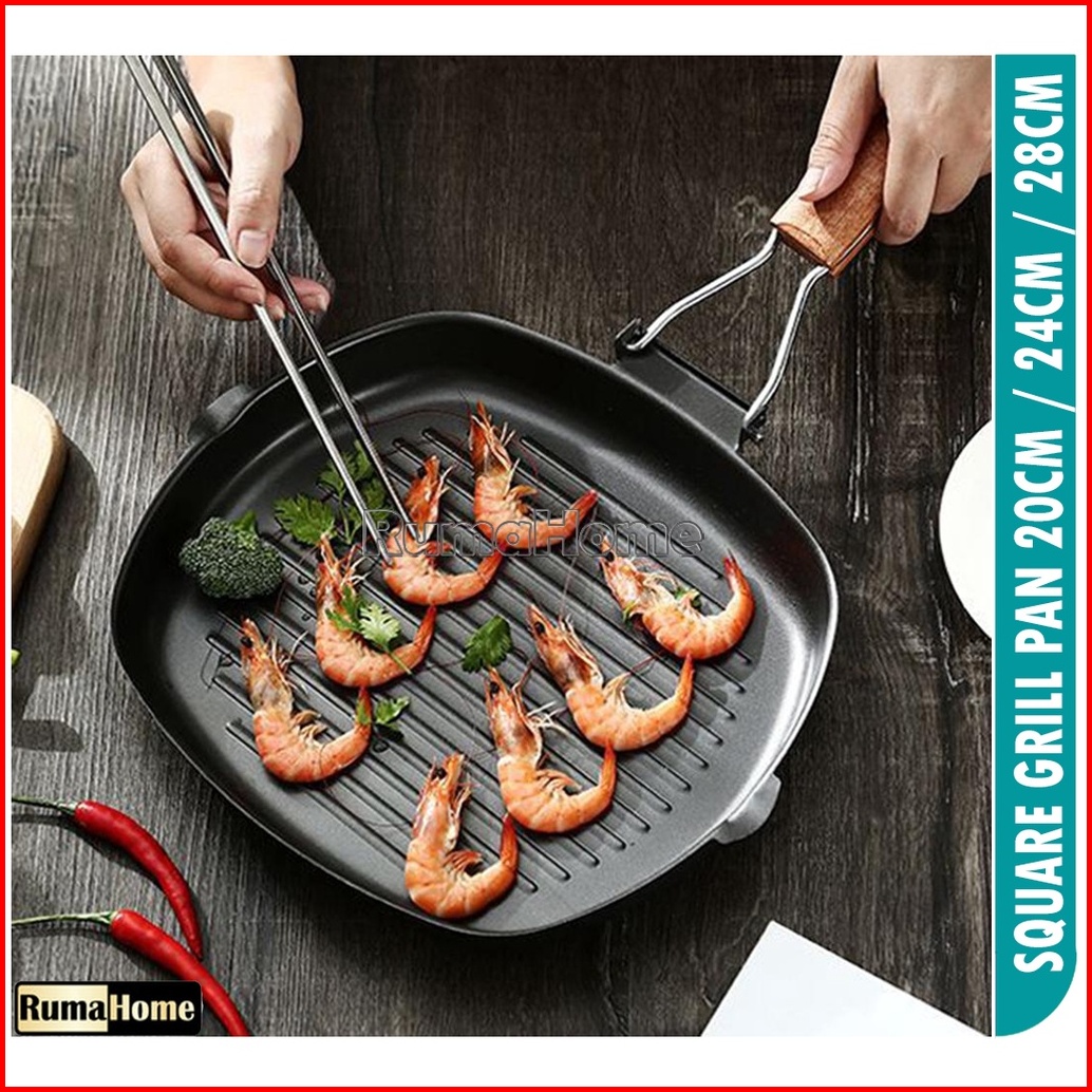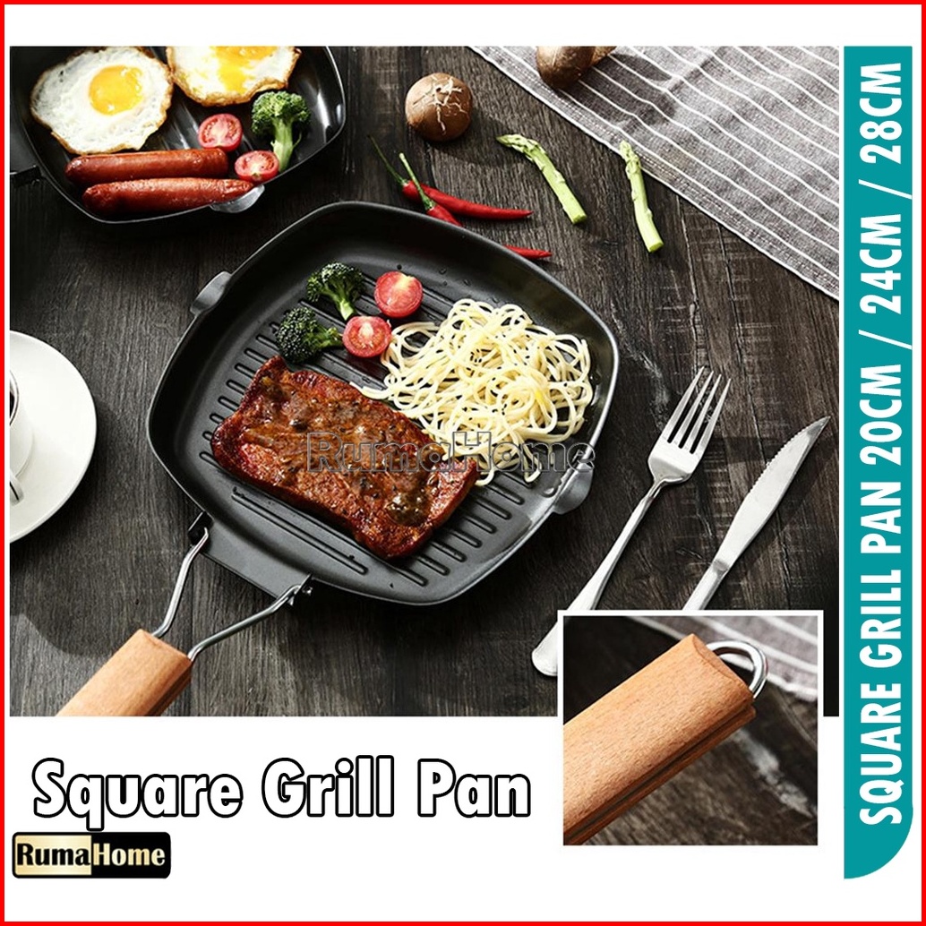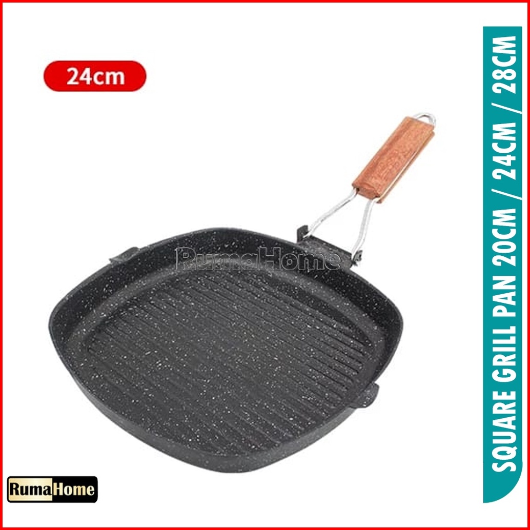 Square Grill Pan Lipat Anti Lengket Grill Pan Anti Lengket 20 24 28cm