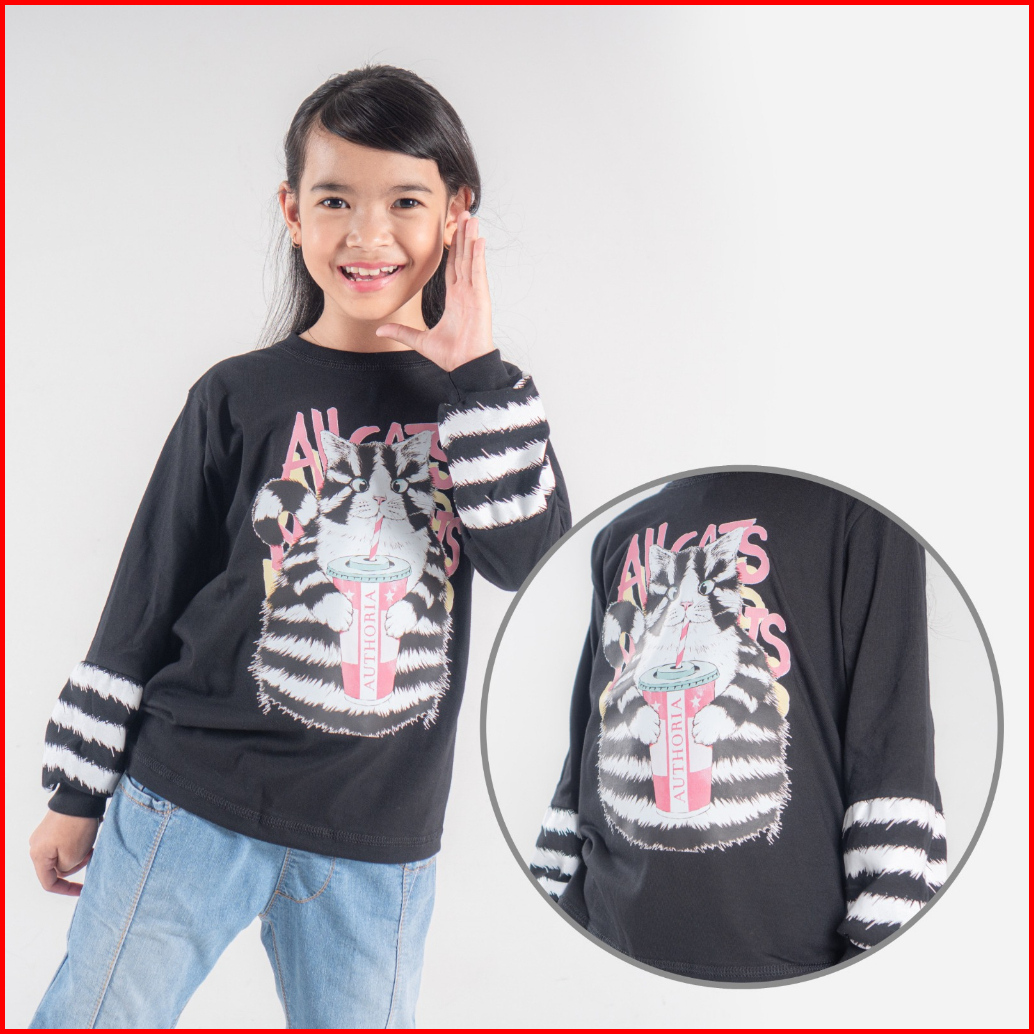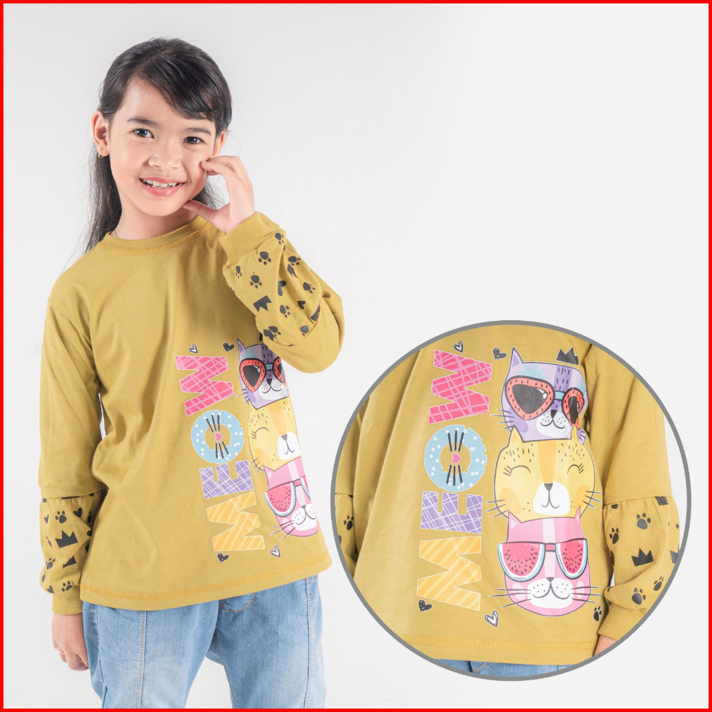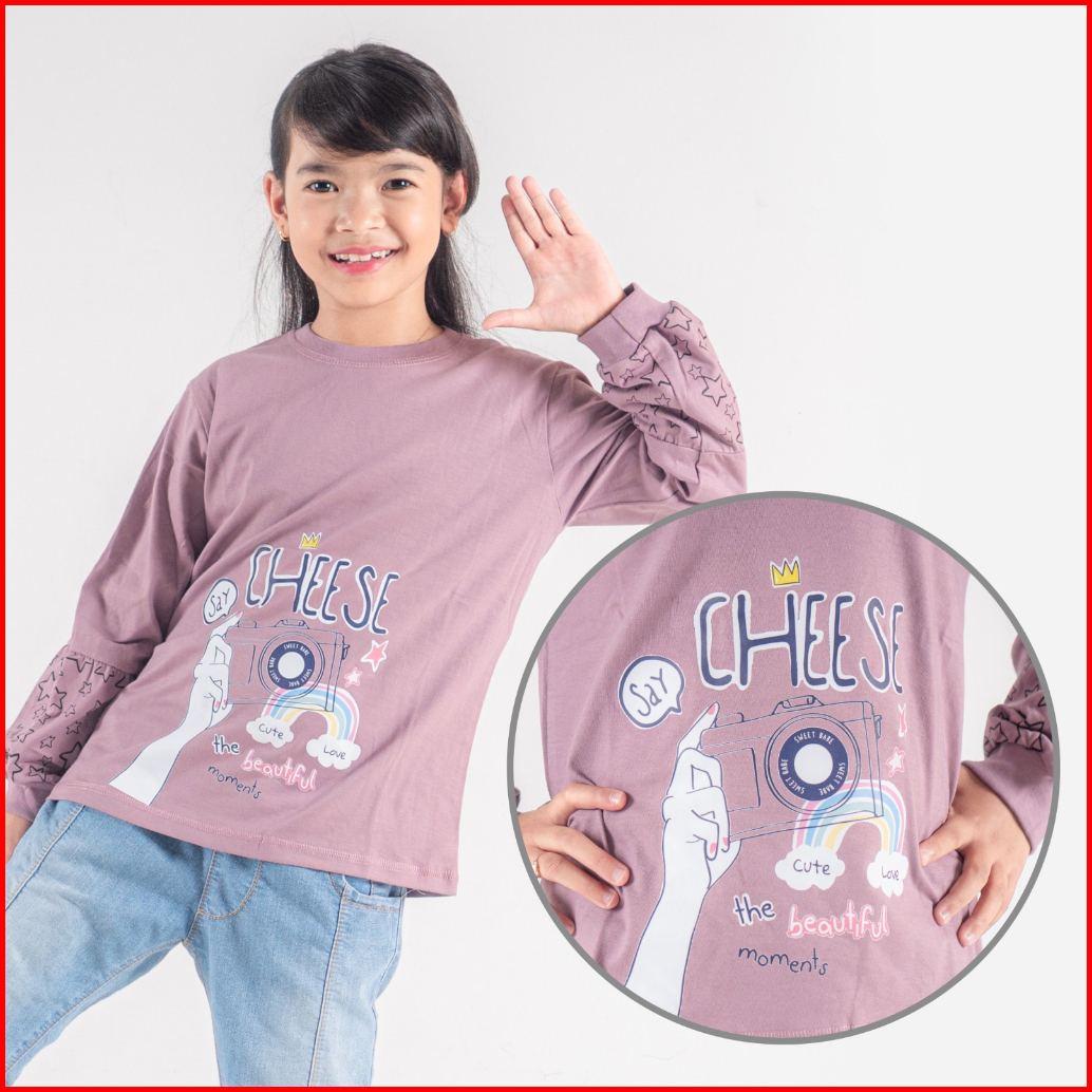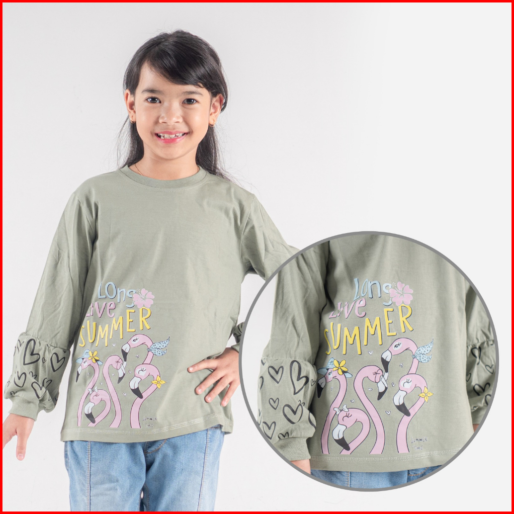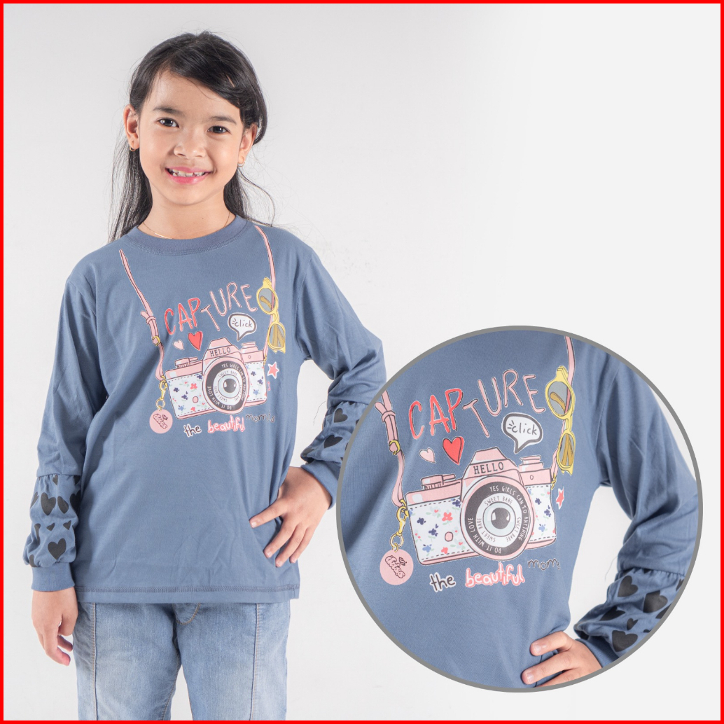 Baju Kaos Atasan Anak Perempuan Lengan Panjang Terbaru Kekinian Variasi Tangan Balon Usia 5-14 Tahun