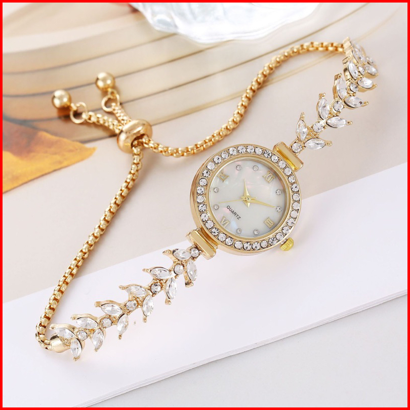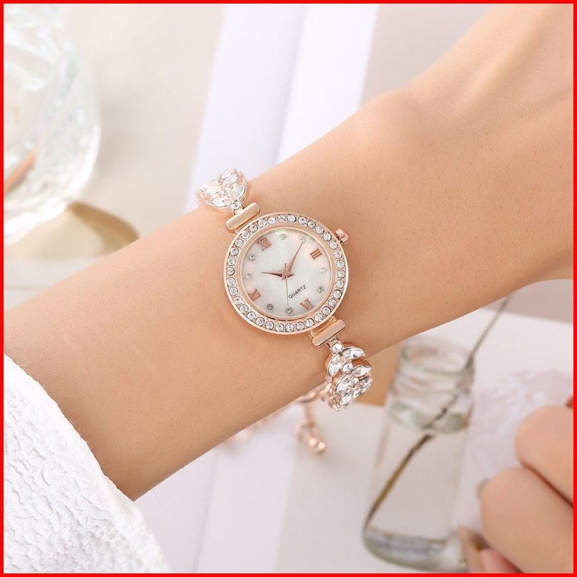 Jam Tangan Wanita Tali Rantai Serut Angka Romawi Berlian Jewerly Wanita Jam Analog Fashion Terbaru Ca096