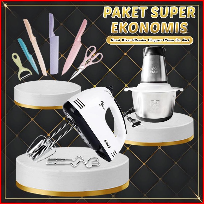 Ss Paket Merdeka Sale Peralatan Dapur Chopper Daging Pisau Set6in1 Hand Mixer