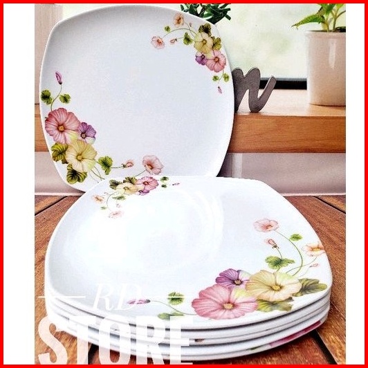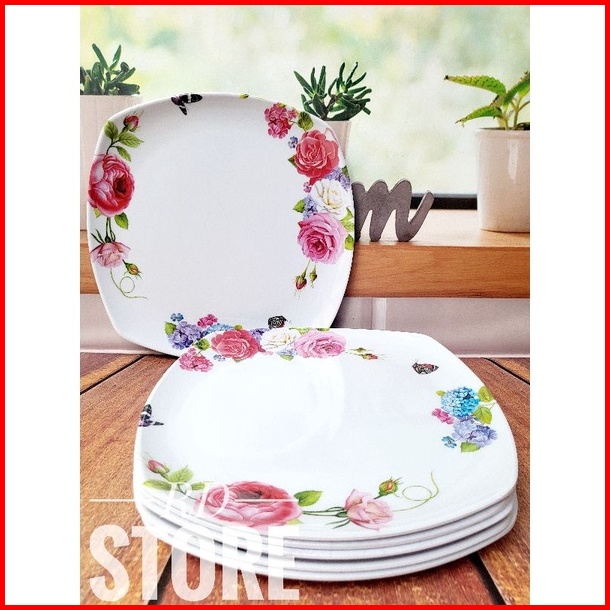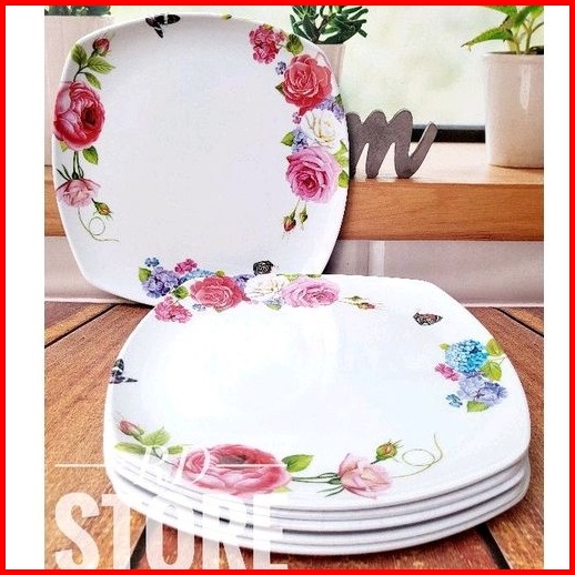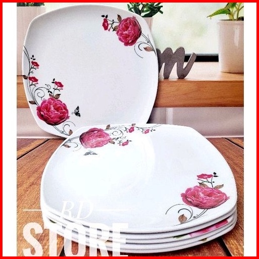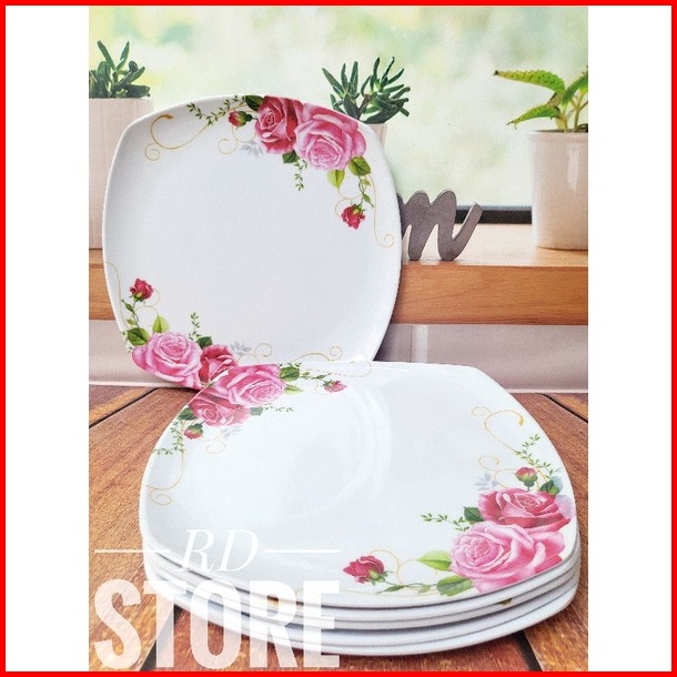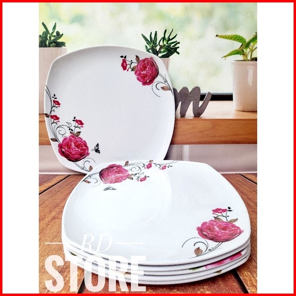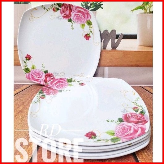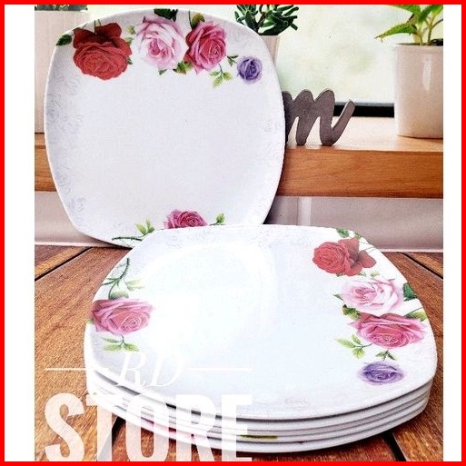 Promo 6.pcs Piring Kotak Saji Ceper Motif Rose Bahan Melamine Ware Anti Panas Dan Lengket