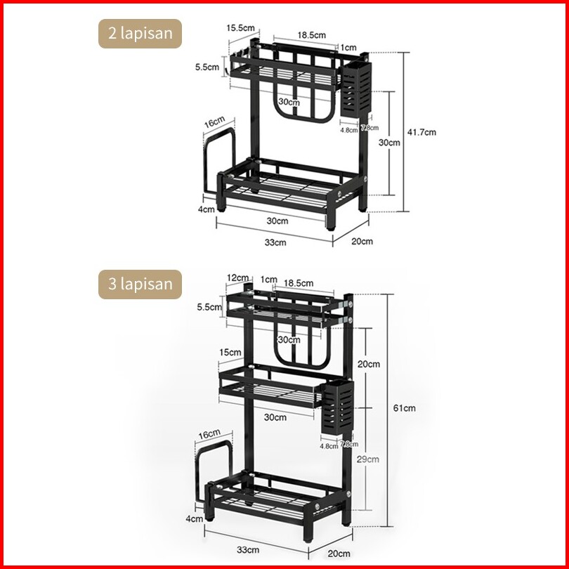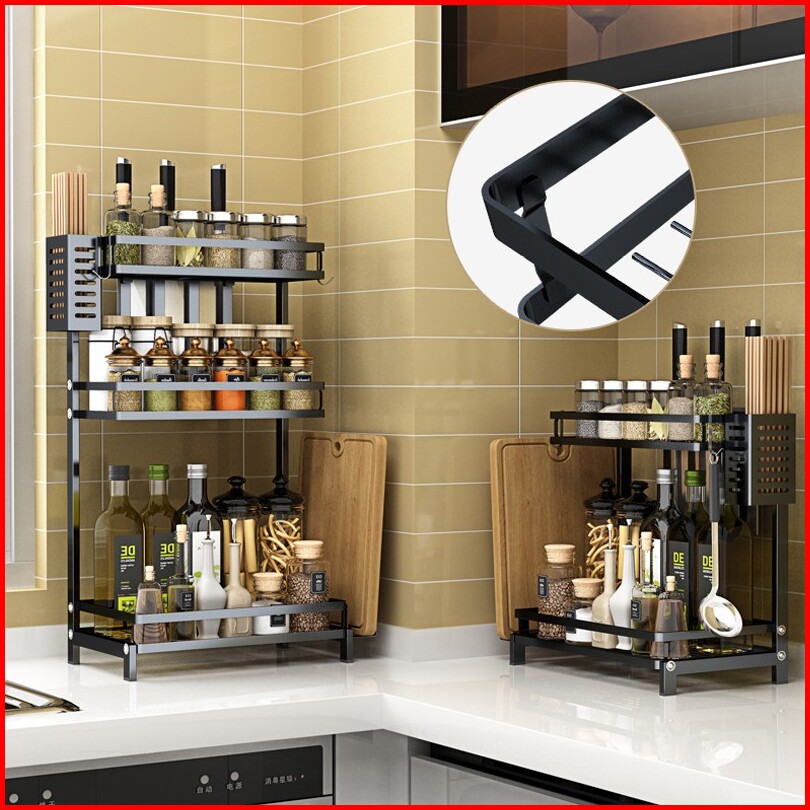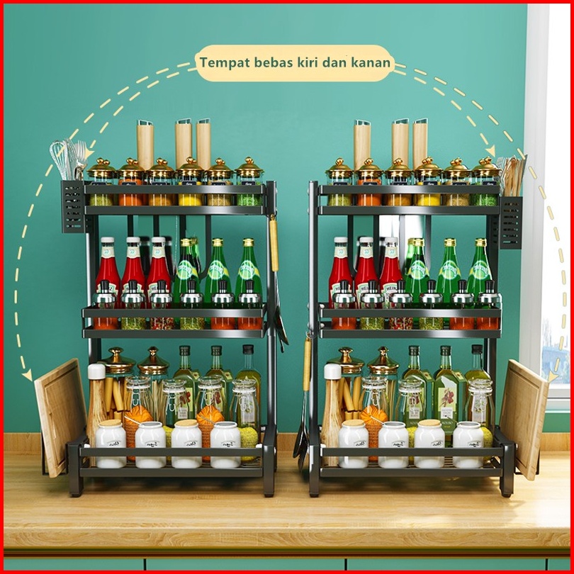 Rak Bumbu Serbaguna Dapur Tempat Bumbu Rak Penyimpanan Dapur Stainless Steel
