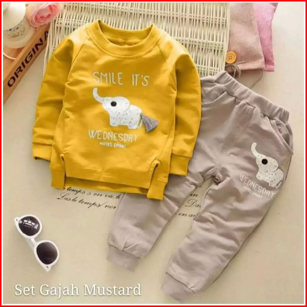 Pakaiana Anak Laki Laki Setelan Sweater Joger Motif Gajah Bahan Babyterry 1-6 Tahun