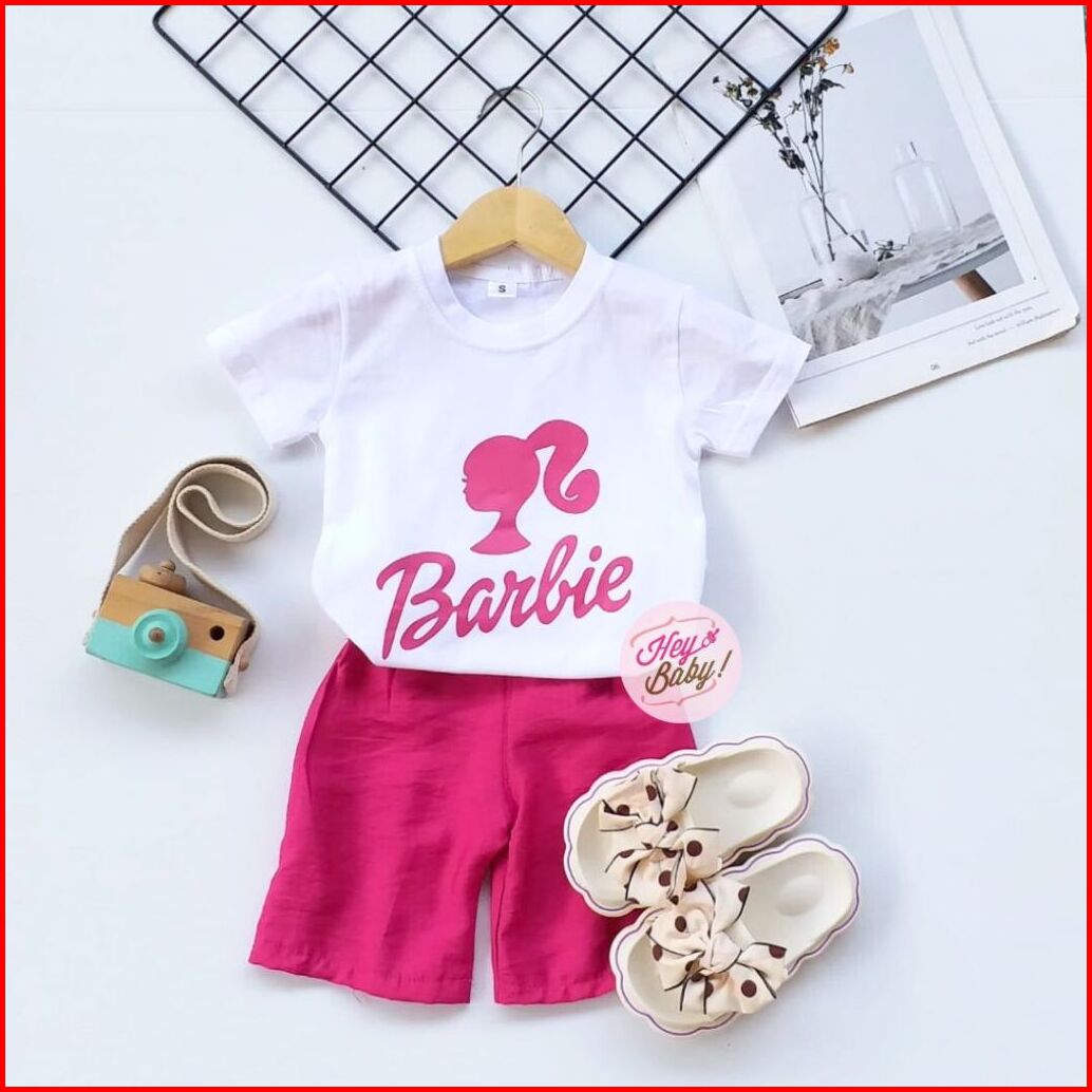 Promo 9.9 Heybaby Set Barbie Setelan Kaos Anak Bayi Perempuan Set Anak Perempuan Lengan Pendek
