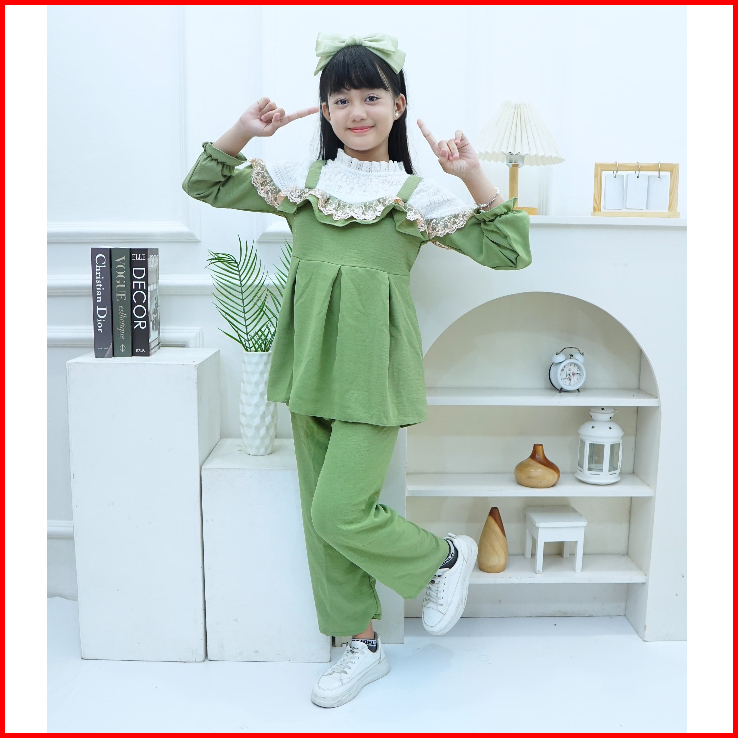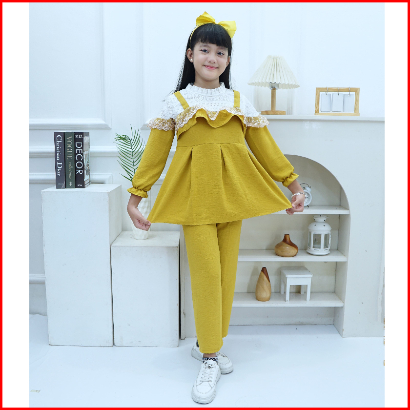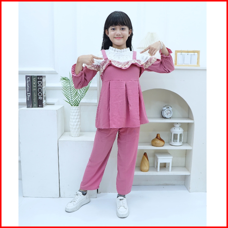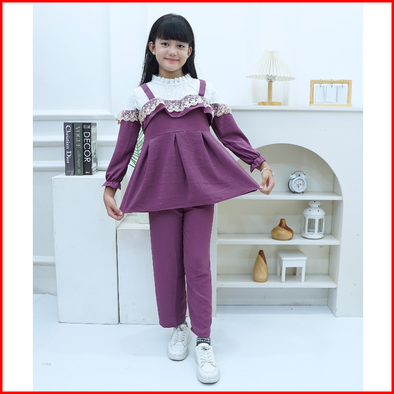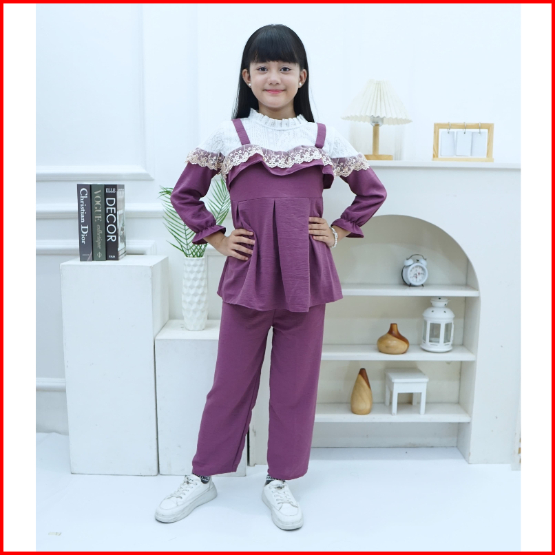 Baju Stelan Renda Mix Burkat Model Terbaru.. Usia 4 Sampai 14 Tahun