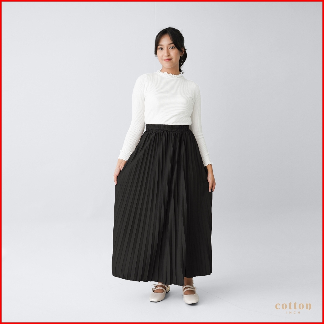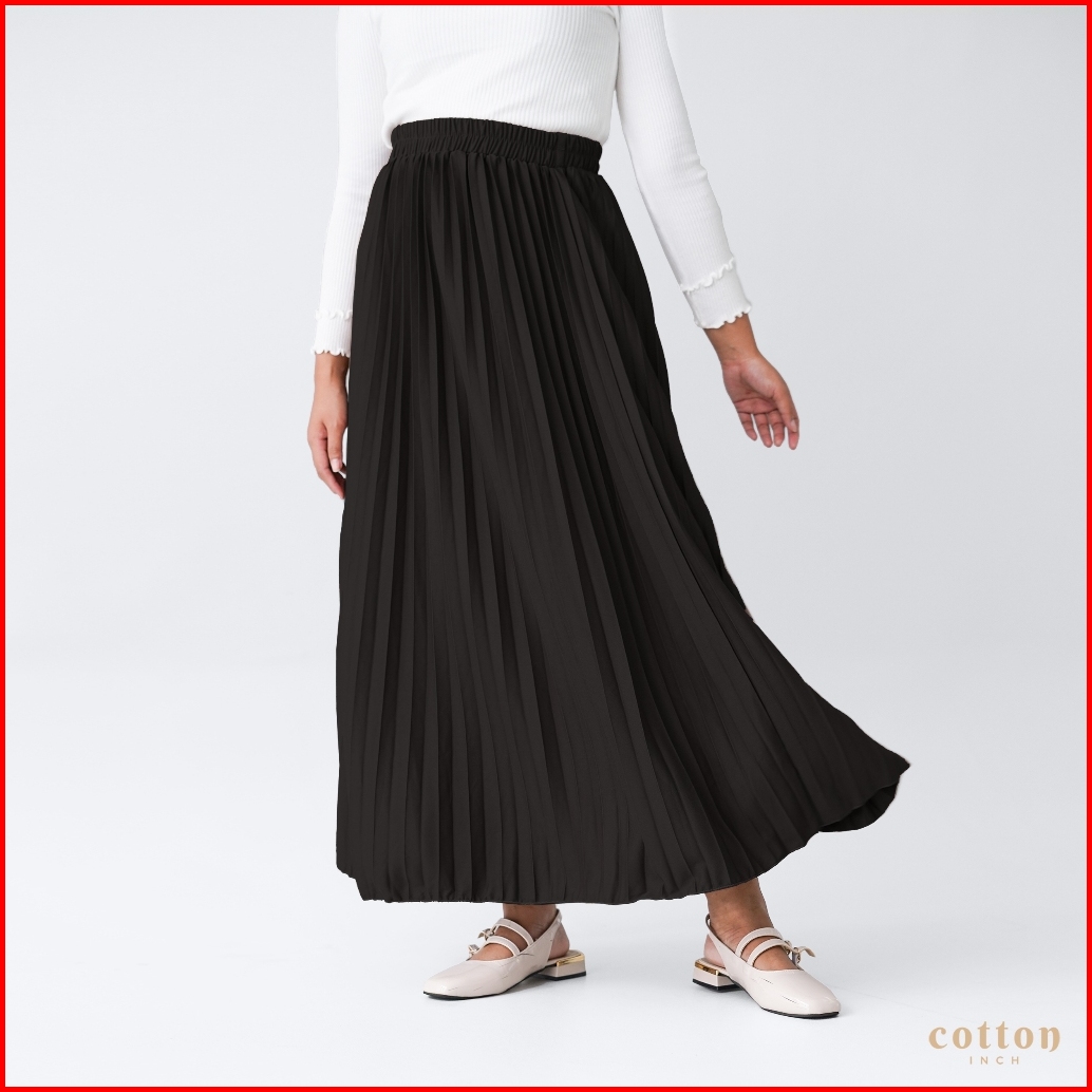 Cotton Inch - Kalula Rok Plisket Panjang Wanita Hitam