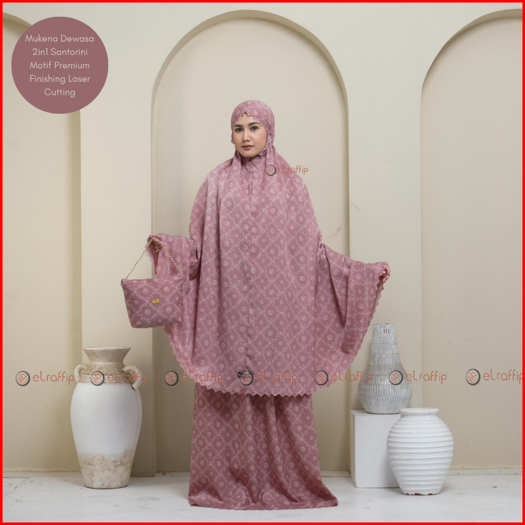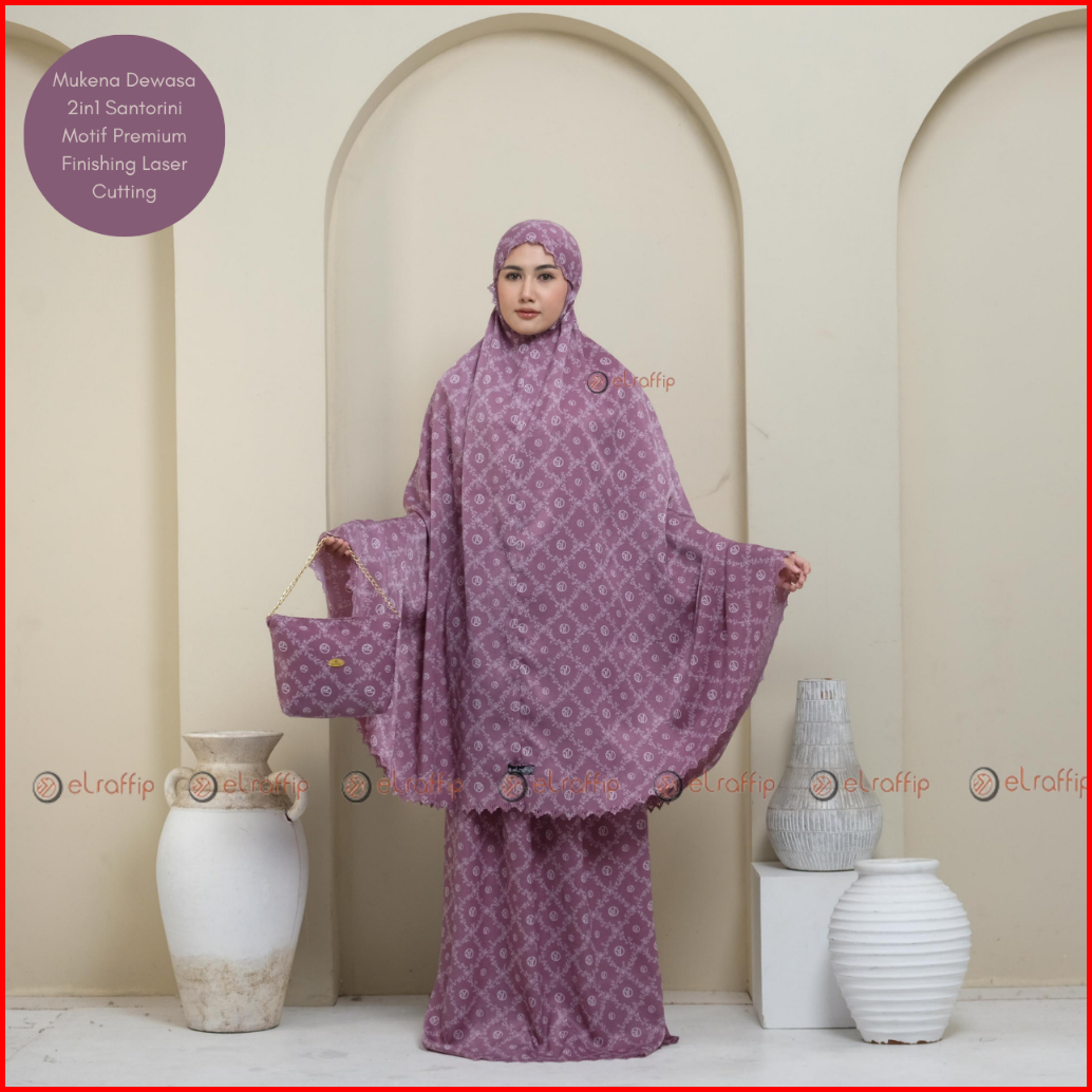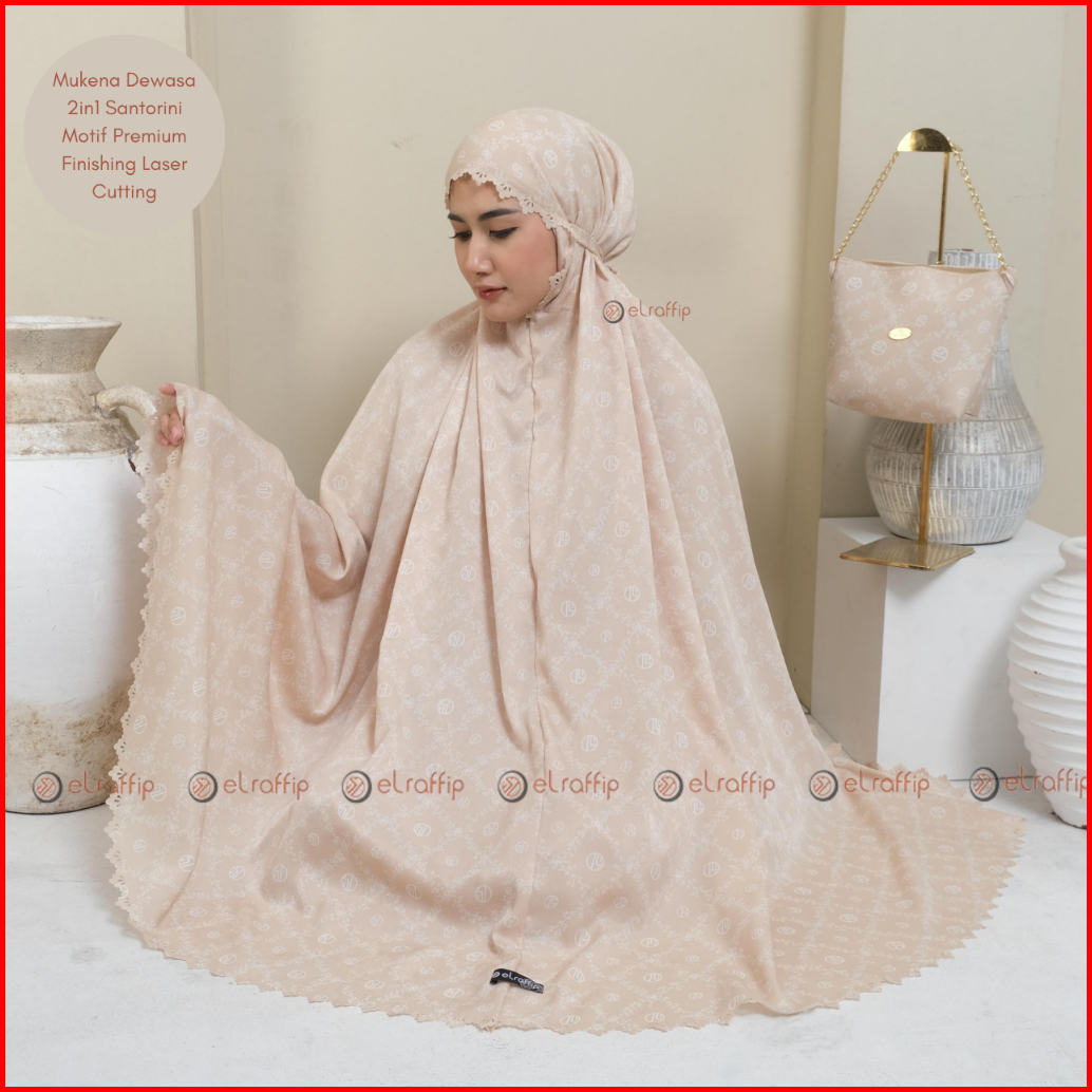 Elraffip- Mukena Dewasa 2in1 Santorini Motif Etnik Printing Finishing Laser Cutting