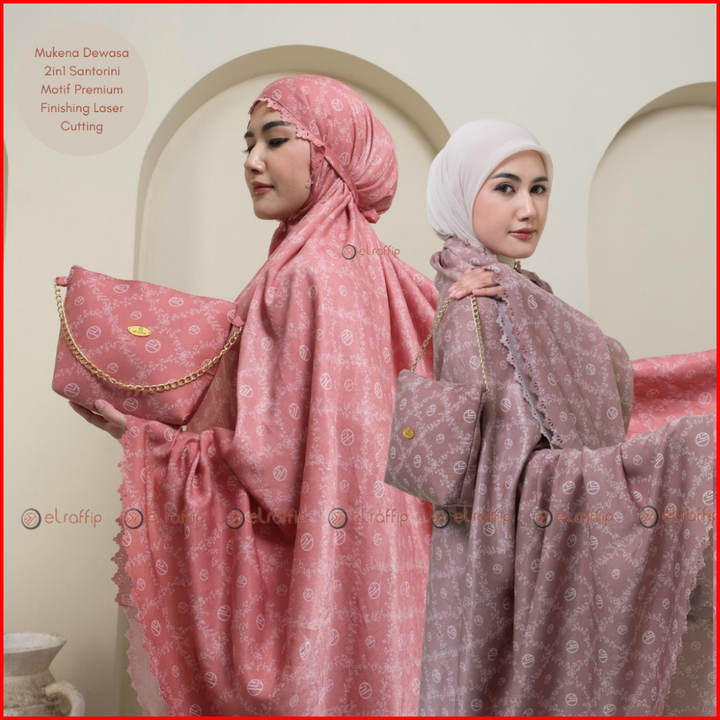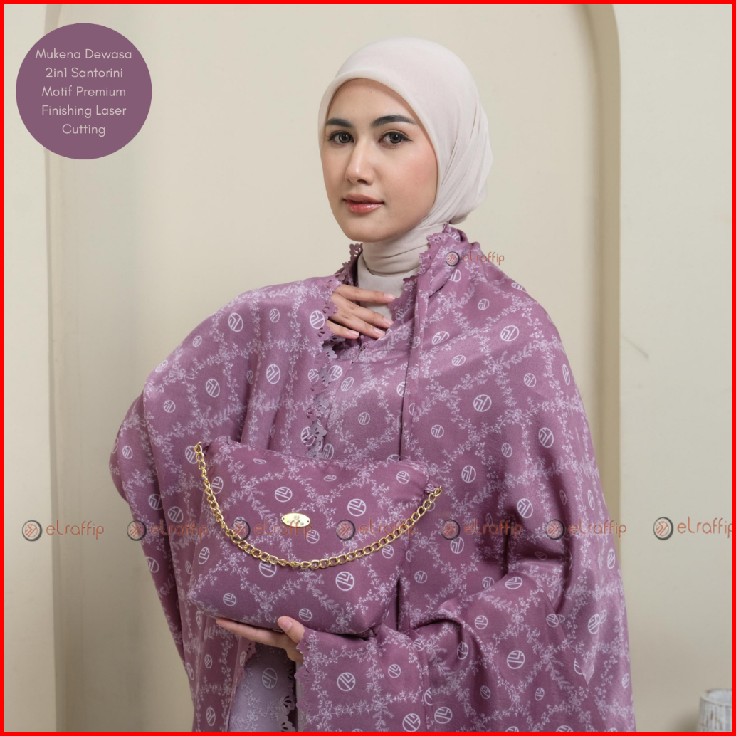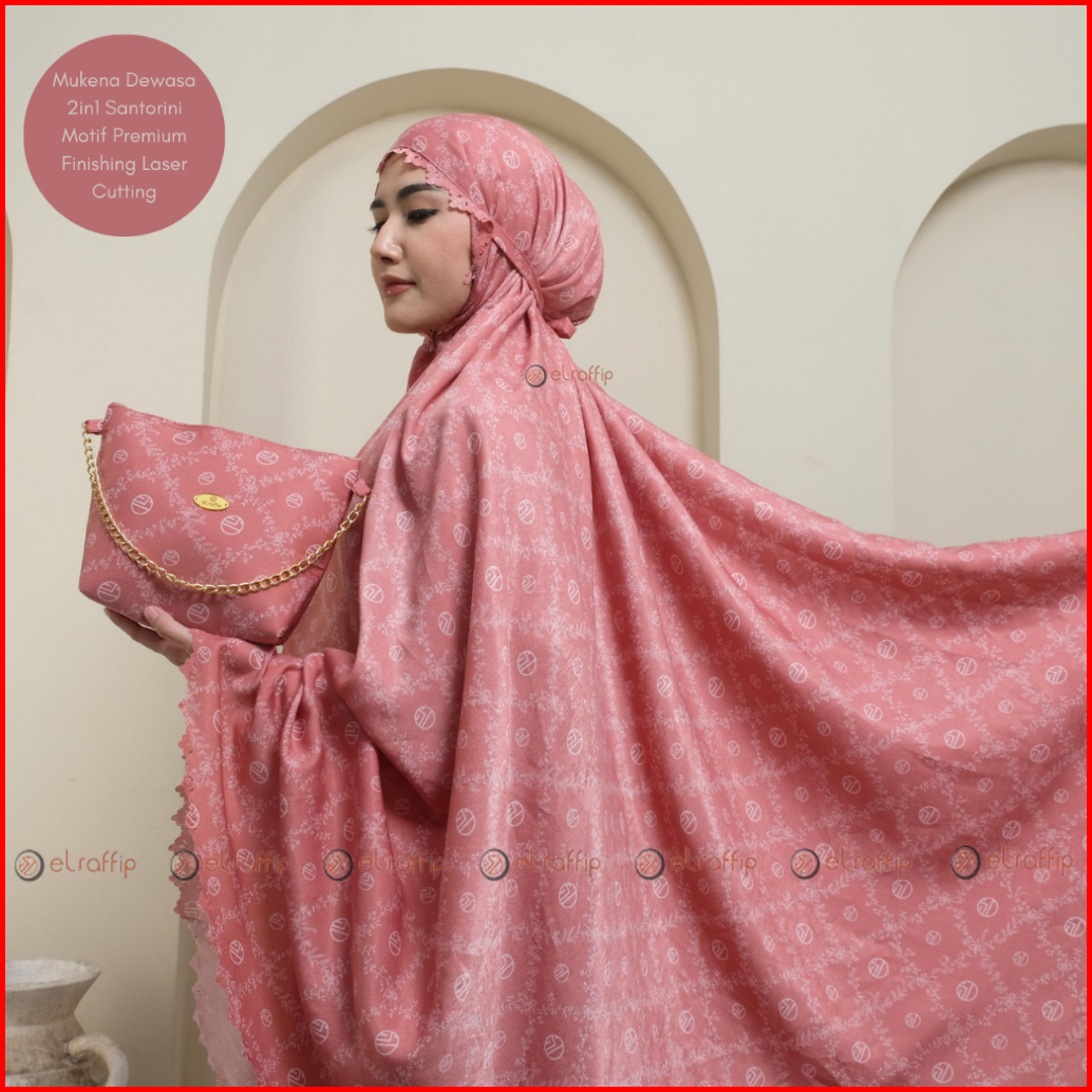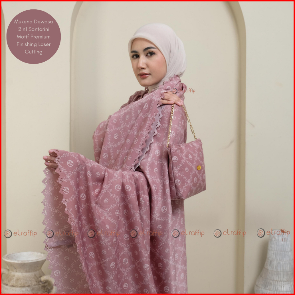 Elraffip- Mukena Dewasa 2in1 Santorini Motif Etnik Printing Finishing Laser Cutting