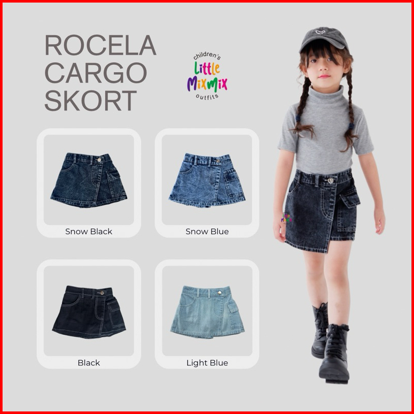 Mixmix Rocela Cargo - Rok Celana Cargo Jeans Anak Perempuan 2 - 7 Tahun