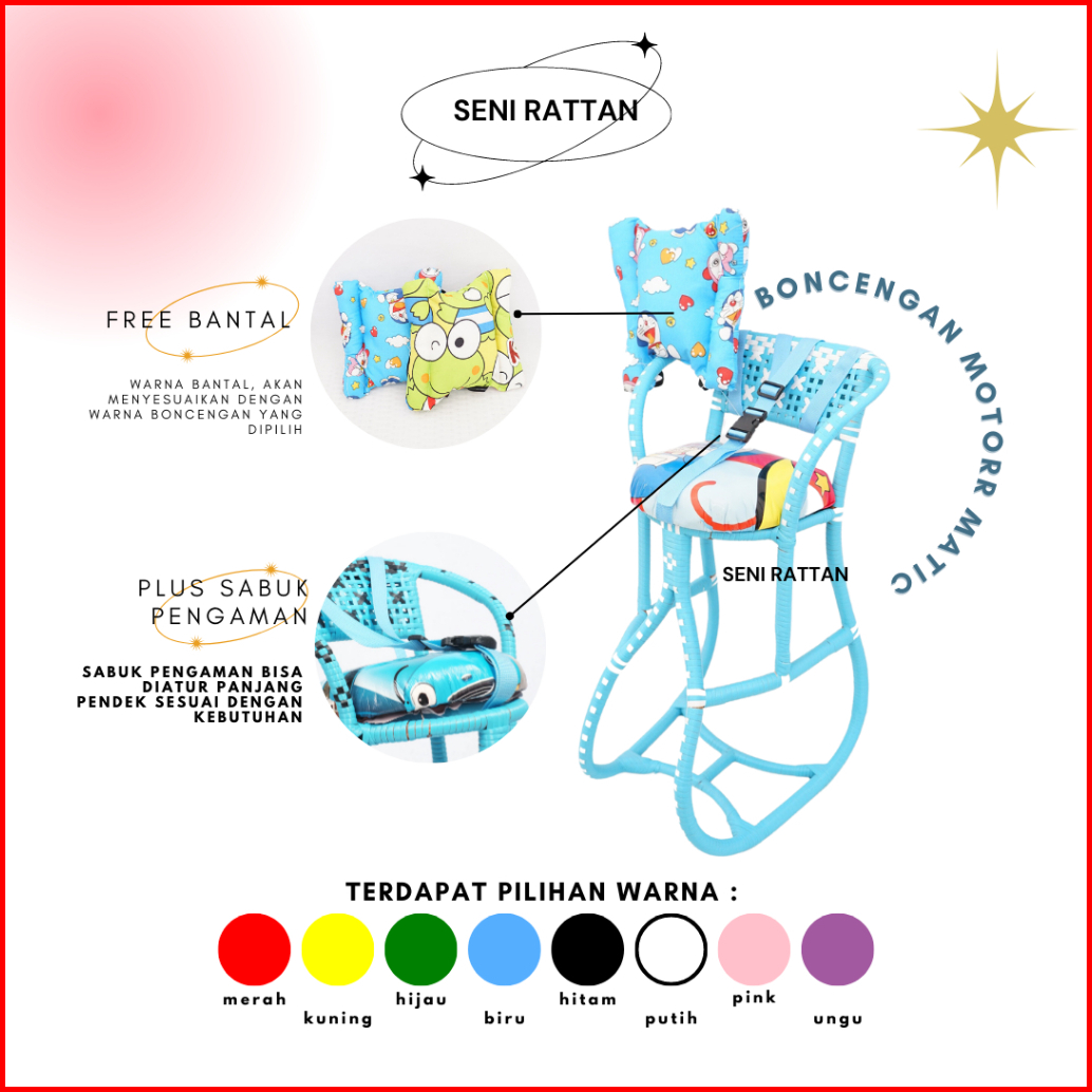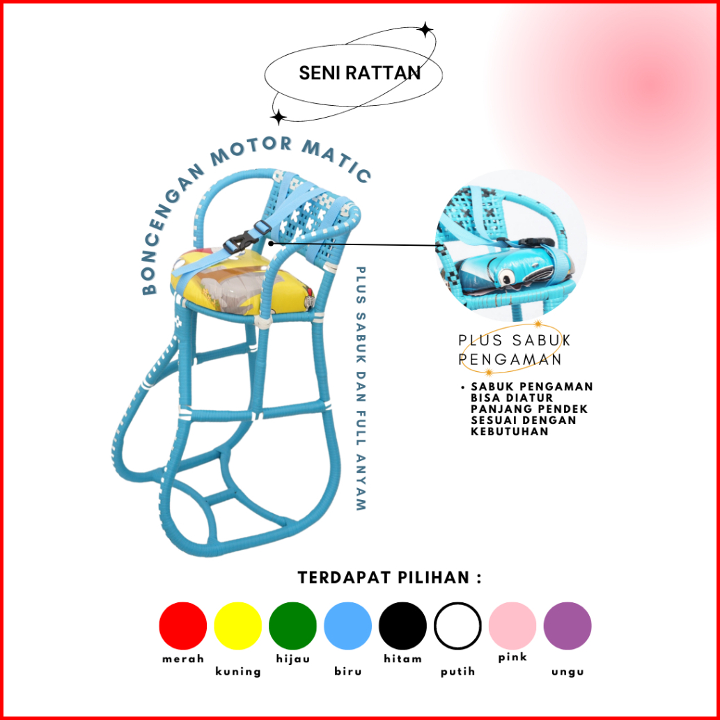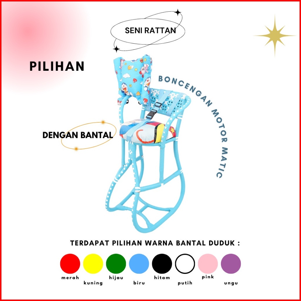 Paket Hemat Bangku Tempat Duduk Anak Kursi Rotan Boncengan Motor Matic Beat Mio Vario Fino Scoopy Xride Full Gratis Bant