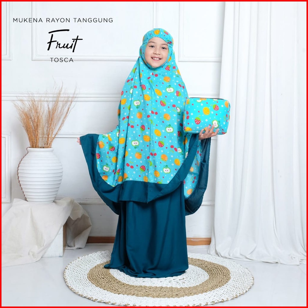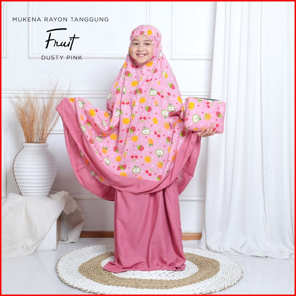 Mukena Rayon Bali Anak Tanggung Fruty Motif Bulu Angsa Usia 5-12 Tahun Mukena Trendy Masa Kini