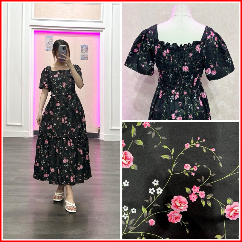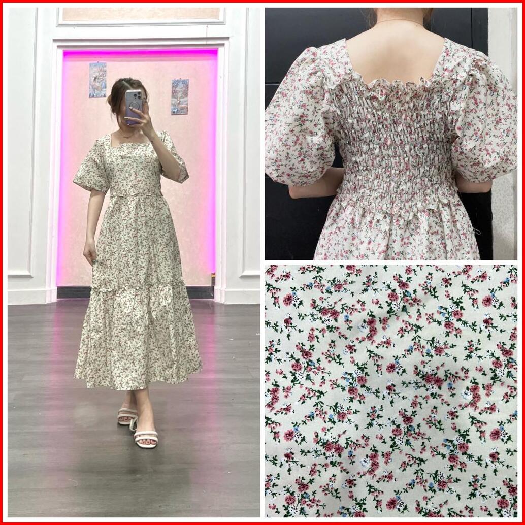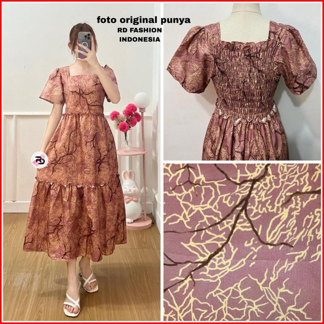 Rd Fashion - Yerika Dress Dress Lengan Pendek Smocked Gaun Musim Panas Kasual Baru Lengan Pendek Smocked Dress Lipit Bun