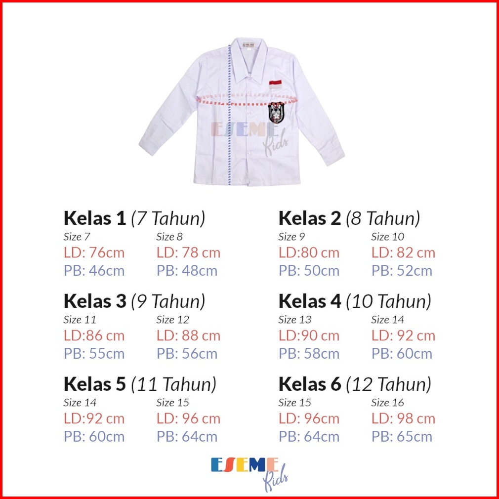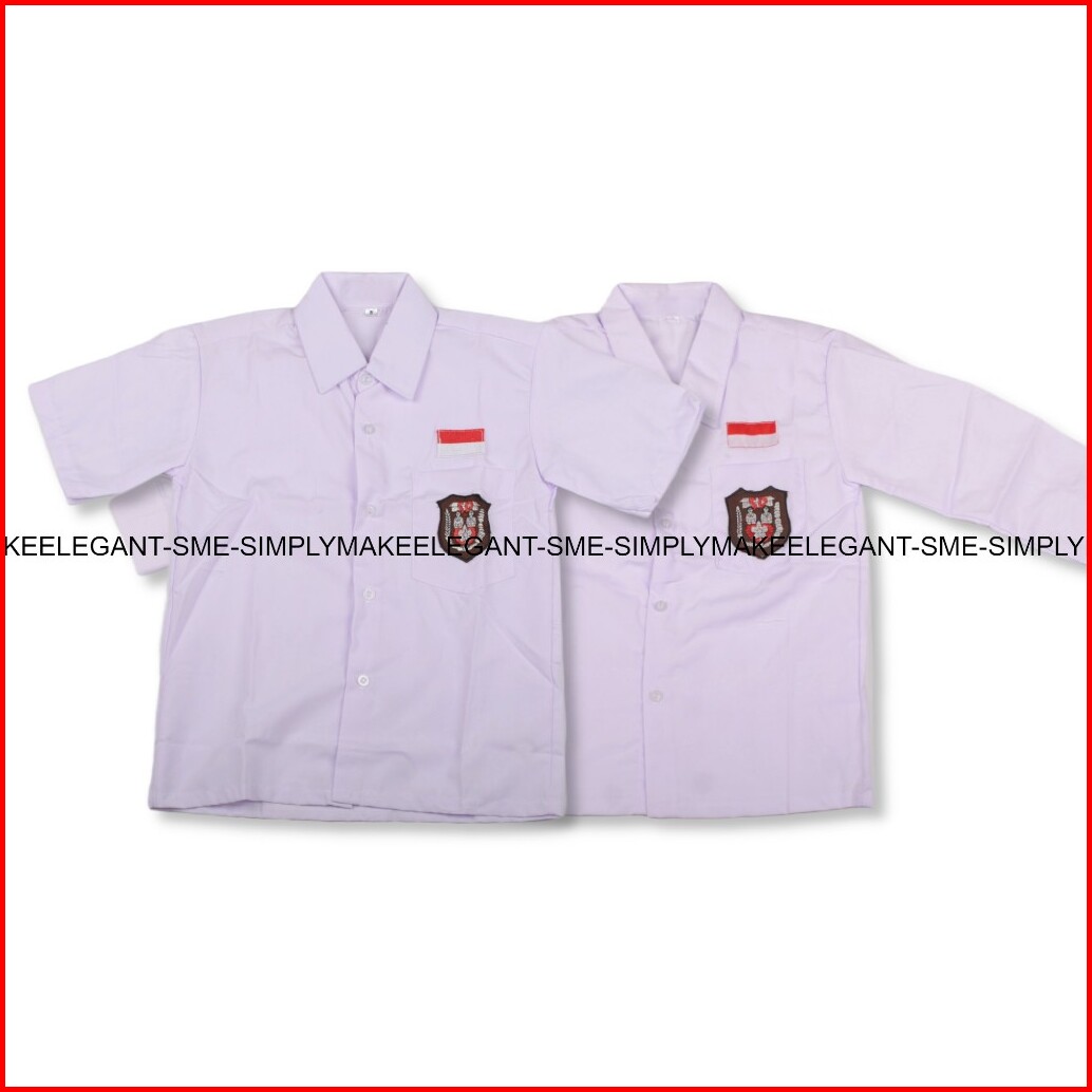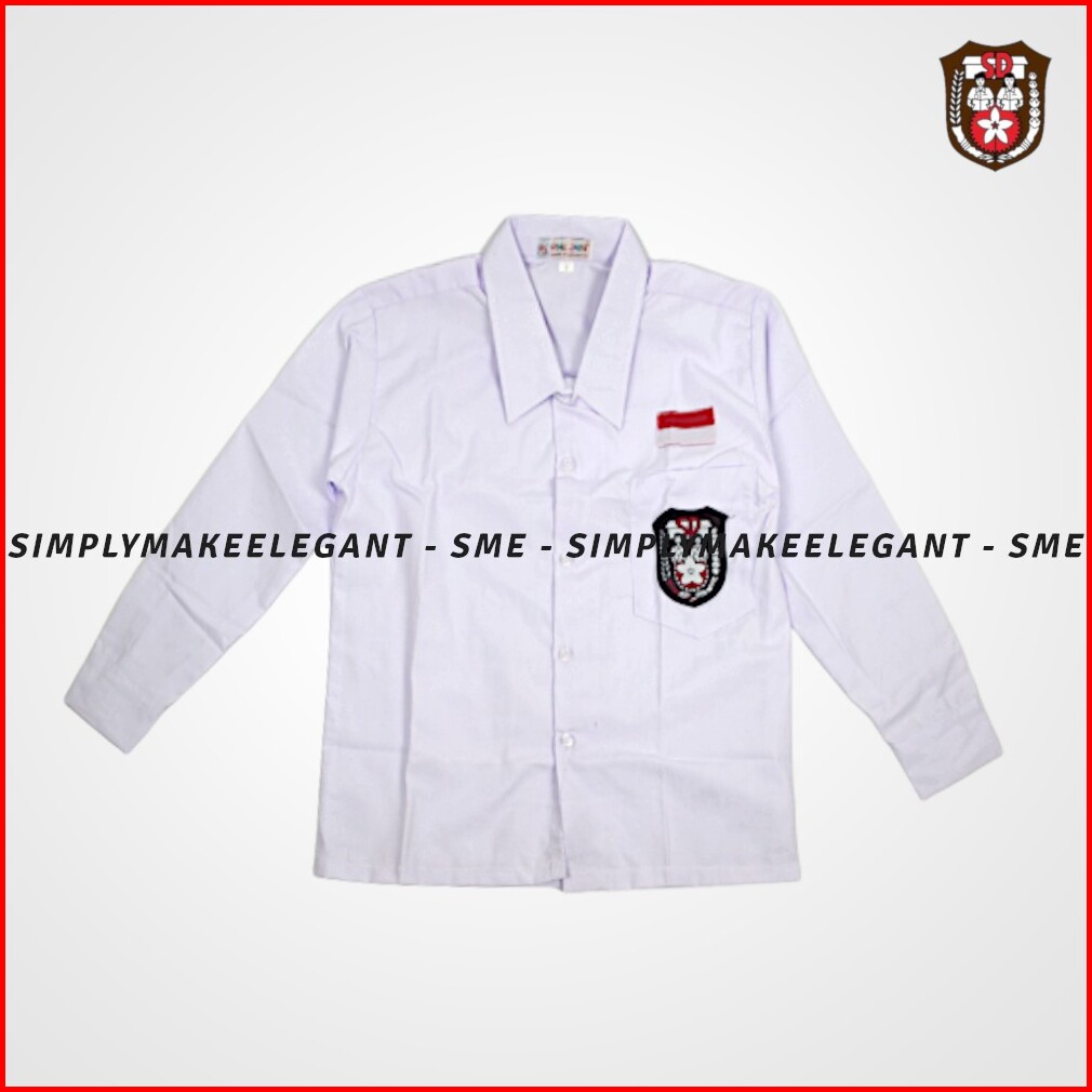 Kemeja Putih Sd Kelas 1-6 Sd Emblem Dan Bendera Bordir