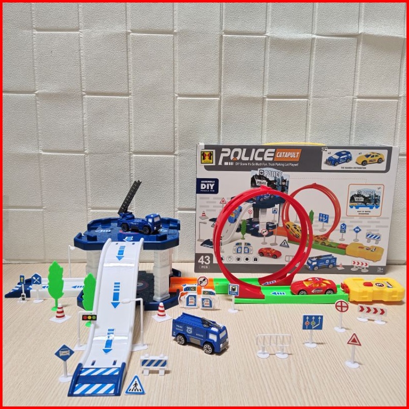 Track Police Catapult Mainan Parking Lot Track Mobil Mainan Mobil Mobilan Anak Track Parking Police Office Parking Plays