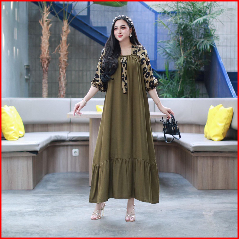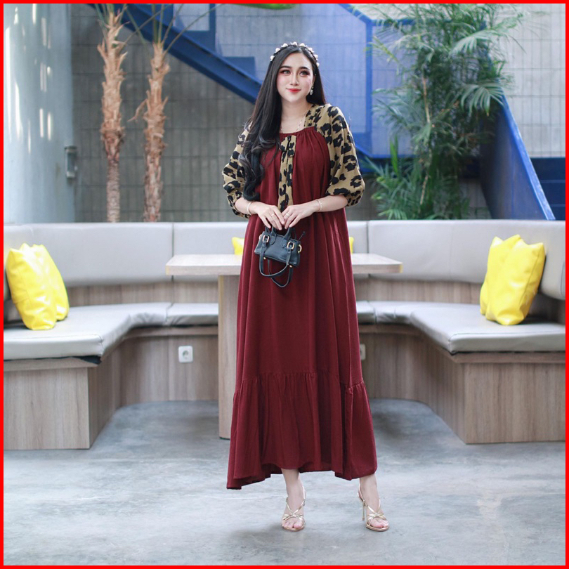 Daster Andin Arab Fuji Leopard Dress Rayon Super Grade A Ori Model Kekinian Depan Kerut Ld 110