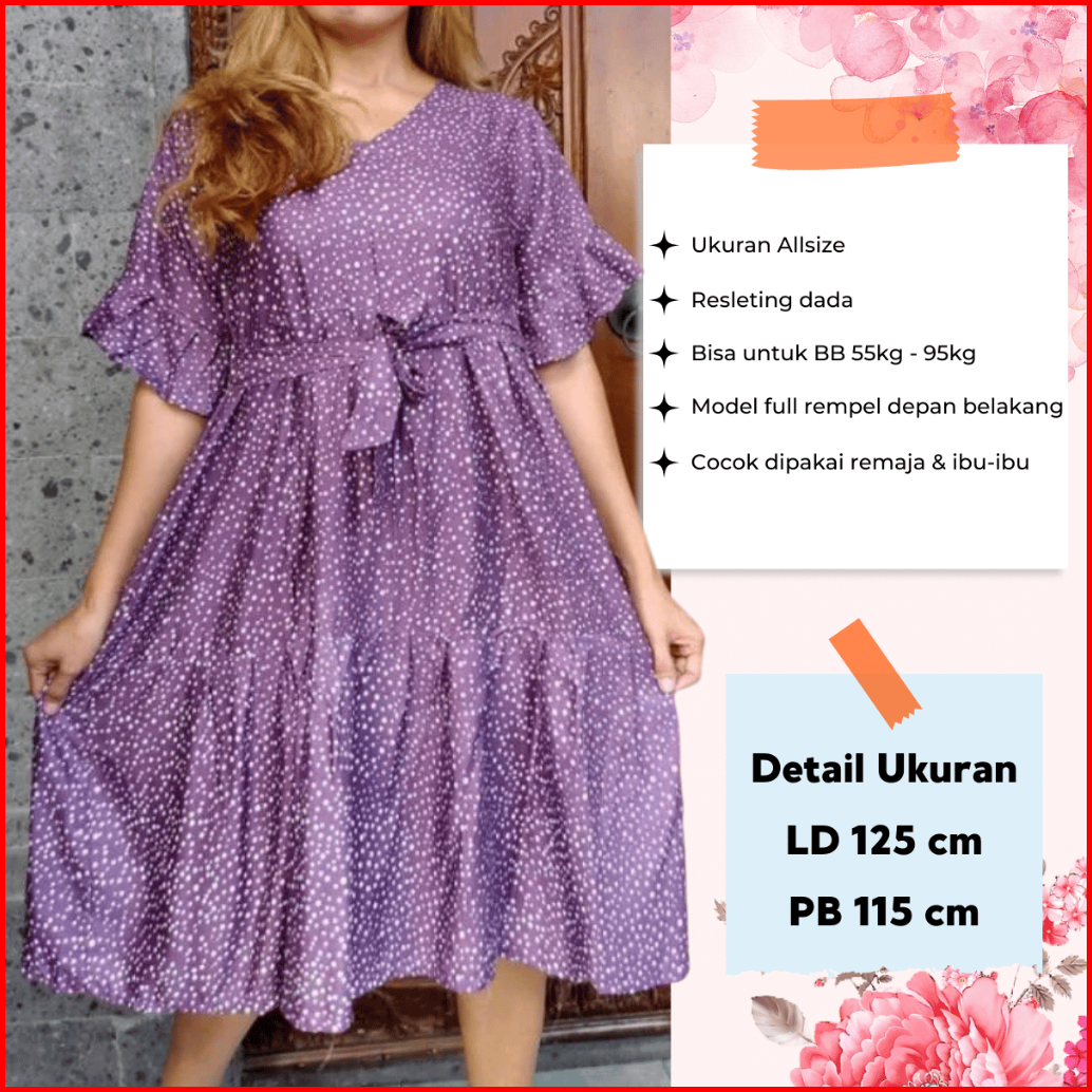 Daster Kekinian Dress Busui Resleting Depan Short Dres Polkado Rayon Premium Jumbo