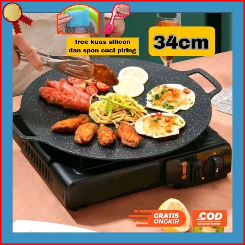 Wajan Konduksi 34cm Korean Grill Free Kuas Silicon Dan Spons Cuci Piring