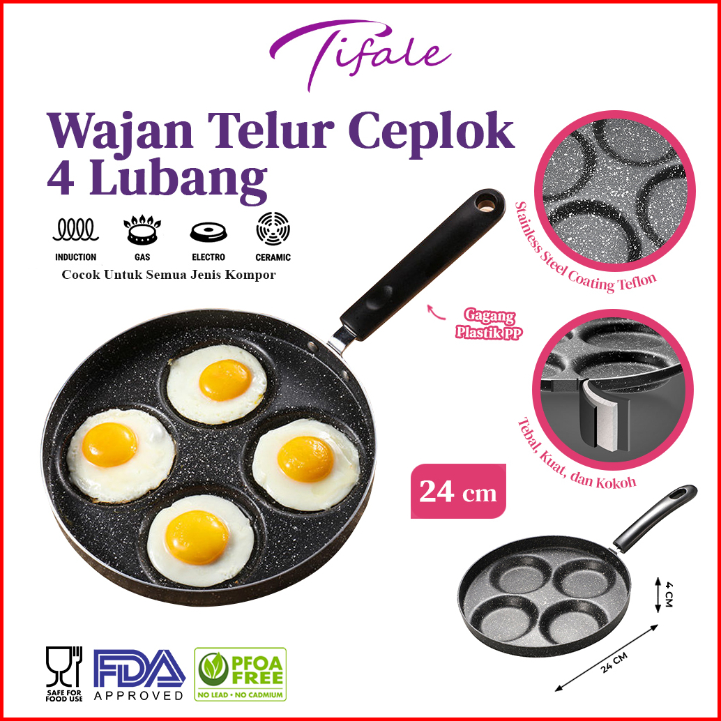 Tifale Cetakan Telur Ceplok Teflon Telur 4 Lobang Anti Lengket High Quality