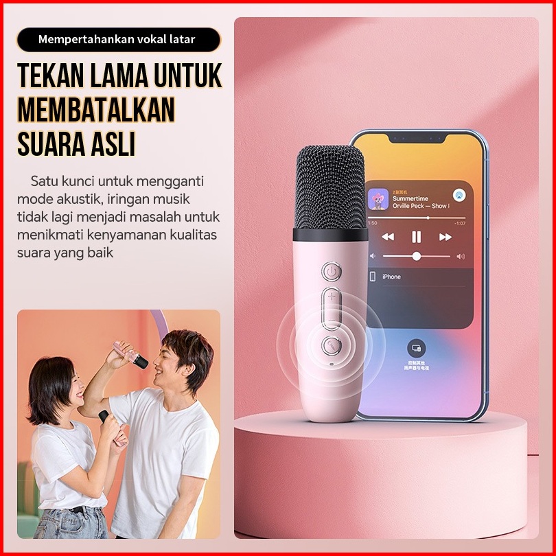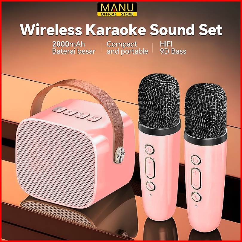 Speaker Mini Bluetooth 2 Mic 1 Karaoke Bluetooth 5.3 Set Mini Full Bass Portable Wireless Dapat Terhubung Ke Keponsel Ko
