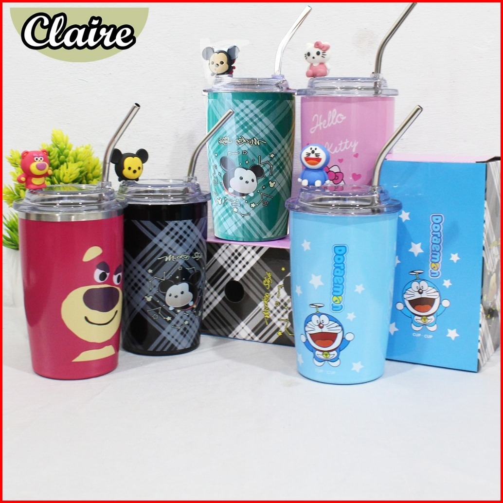 Tumbler Glass Stainless Karakter Botol Minum Anak Tumbler Karakter Include Box Dan Sedotan Stainless Stainless Bottle Fo