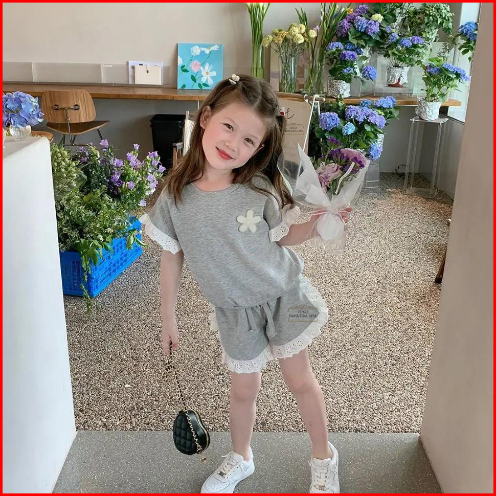 Setelan Anak Perempuan Renda Bunga Terbaru 2023 Baju Anak Perempuan Umur 1-5 Tahun