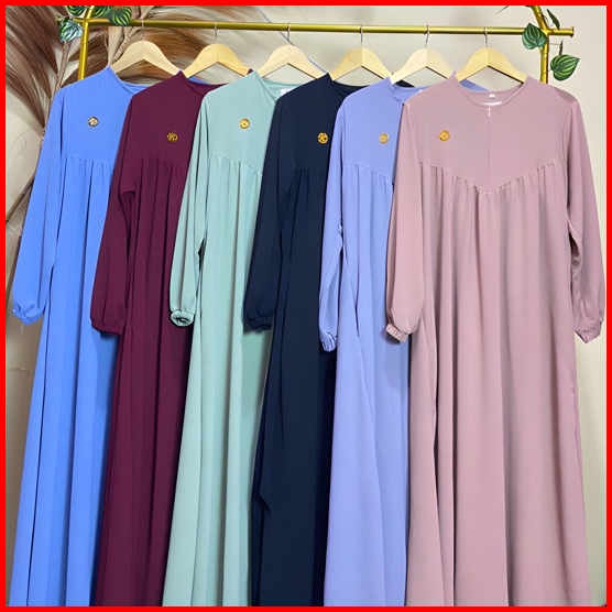 Aira Dress Gamis Dewasa Polos Simple Bahan Crinkle Airflow Busui Resleting Jumbo Premium