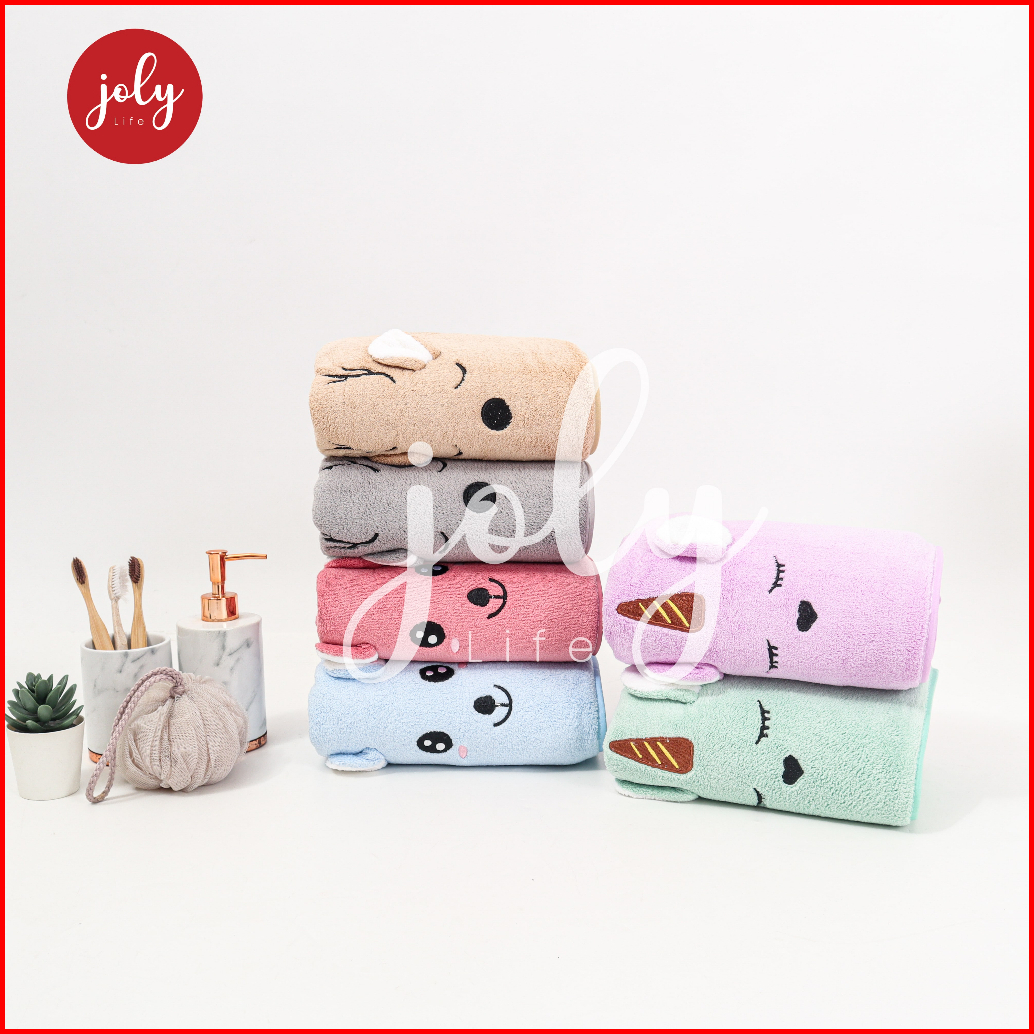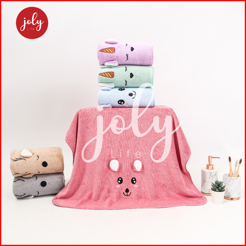 Handuk Mandi Bulu Rabbit Kuping Timbul 60cm X 120cm 70cm X 140cm Import Bisa Custom Nama Custom Daya Serap Tinggi Super
