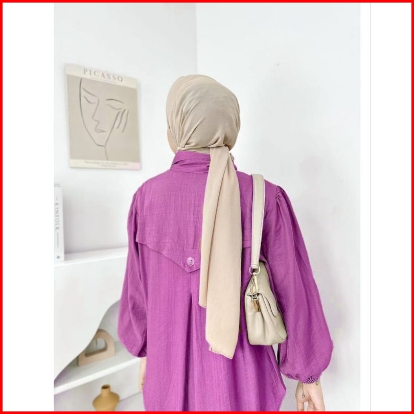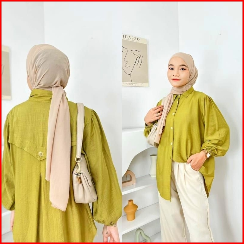 Alenza Blouse Polo Linen Variasi Kancing Belakang Atasan Wanita