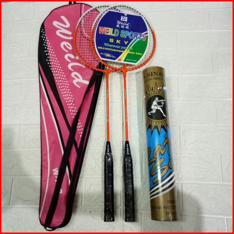 New Raket Badminton Anak Dewasa Set Weild Isi 2 Pcs Bonus Kok Raja Sinar Original