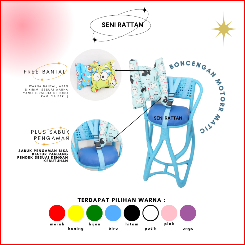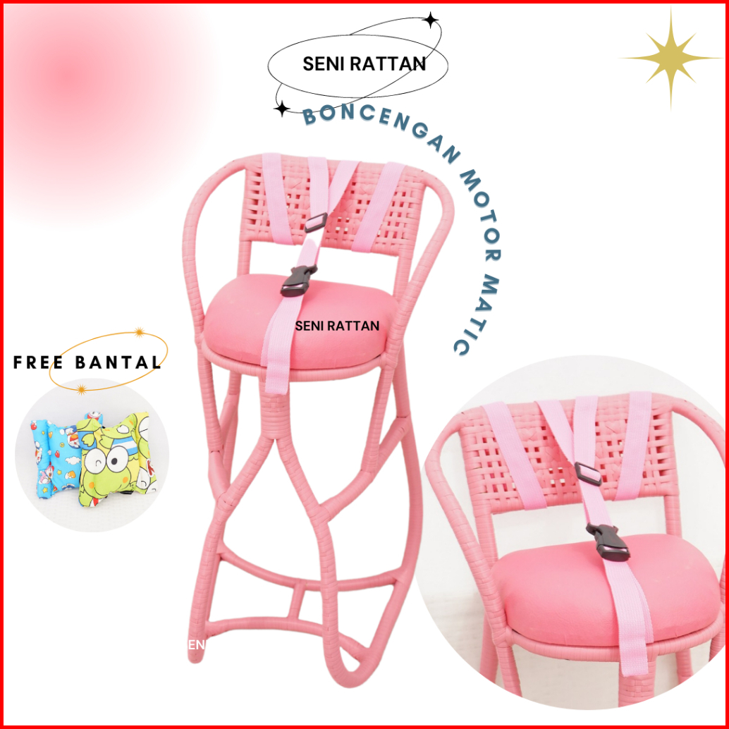 Boncengan Anak Motor Anyaman Rotan Sintetis Full Pink Plus Bantal Stang Dan Sabuk Pengaman