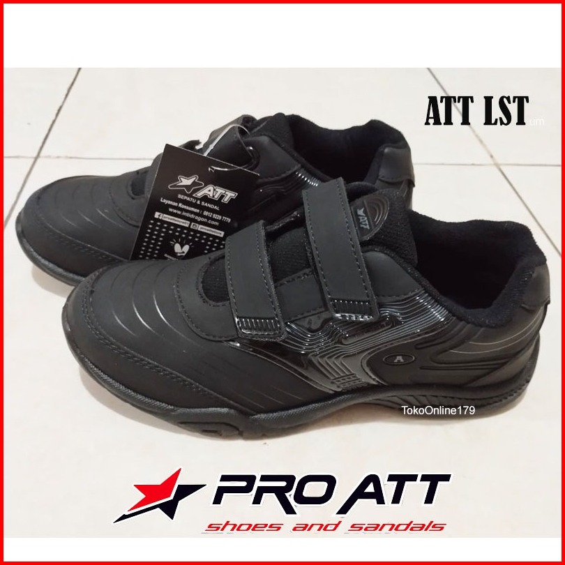 Promo Sepatu Sekolah Pro Att Anak Laki Perempuan Full Hitam Polos