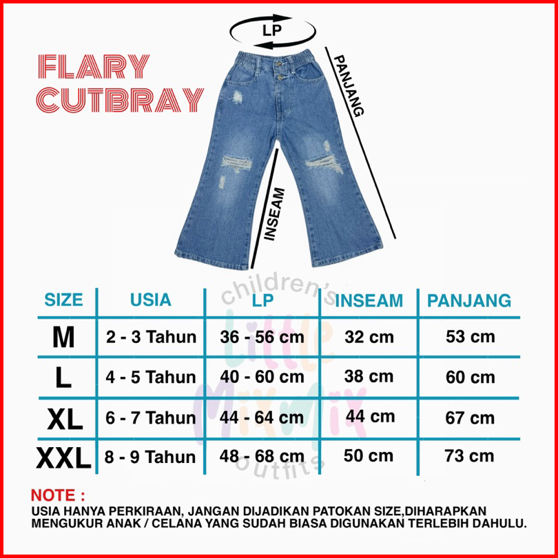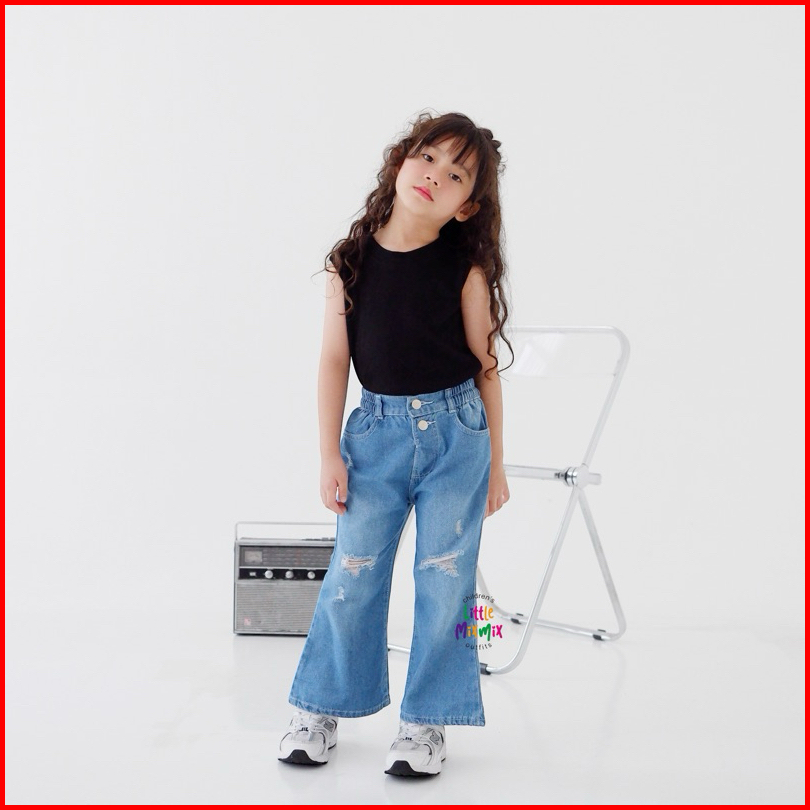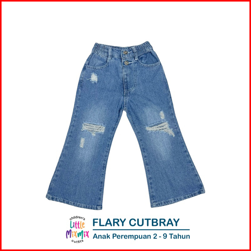 Mixmix Flary Cutbray - Celana Cutbray Jeans Sobek Ripped Anak Perempuan 2 - 9 Tahun